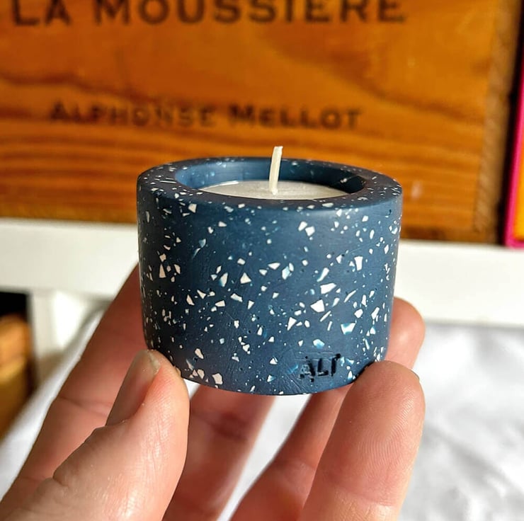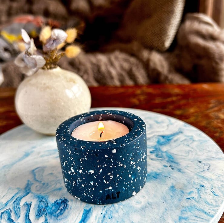 Navy Terrazzo Candle Holder, Tea Light Candle Holder, Jesmonite Candle Holder
