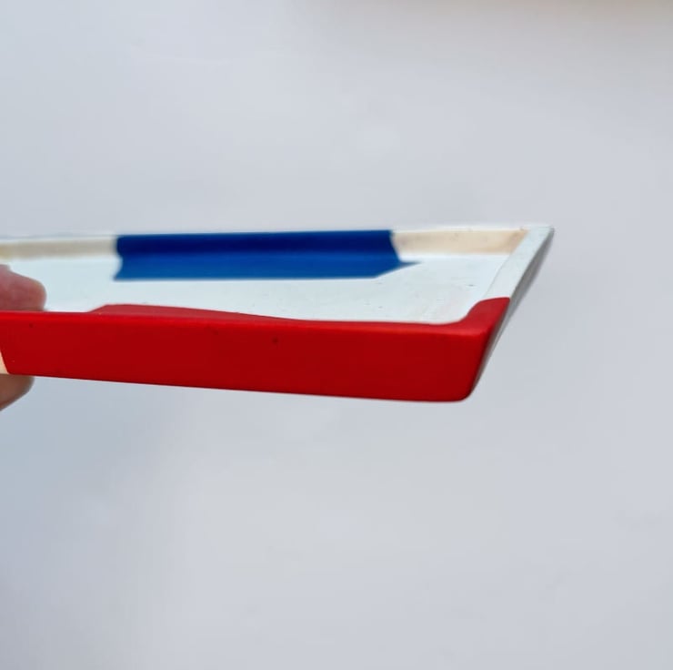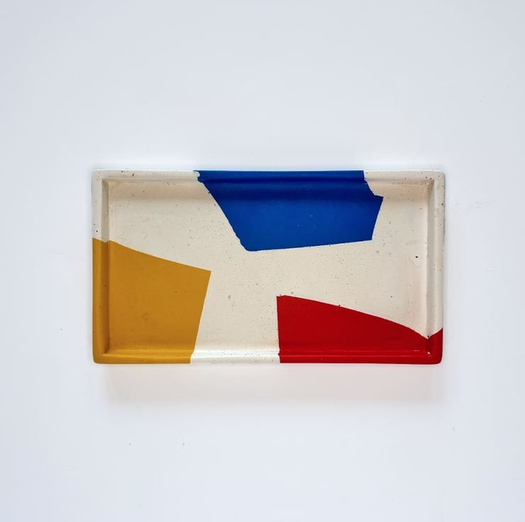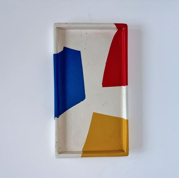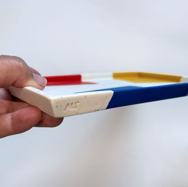 PRODUCT DETAILS: 18.3cm (W) x 1.35cm (H) x 10cm (D) / Weight: 230g / Material: Jesmonite / Come with protective and anti-slip cork at the back of the trays / Designed and handcrafted by ALT Hackney in London, United Kingdom / As each piece is handcrafted, all products are unique, and the actual products might look slightly different from the photos