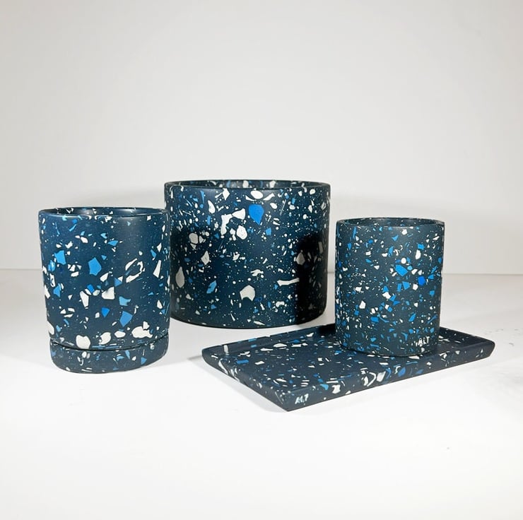 Terrazzo navy plant pot, Large indoor planter, sustainable decorative Jesmonite