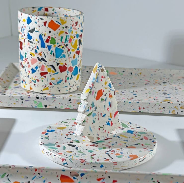 Terrazzo Cork Jesmonite Coasters, Tray, Concrete Trinket Dish, Housewarming Gift