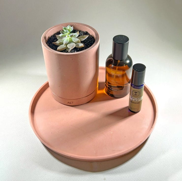 The plant pot was the very first product I ever created. I envisioned a functional yet stylish cylinder planter with drainage hole and a separate water tray—perfect for encouraging healthy root growth indoors, whether on a sunny windowsill or in the kitchen. To bring this idea to life, I taught myself 3D design software and used a 3D printer with biodegradable filament to produce the initial prototype. From there, I crafted a mould, allowing me to create bespoke plant pots in any colour combination. Our rose-pink finish is a minimalist design that complements any type of home. This little planter is ideal for cacti or succulents—a piece we’re truly proud of, combining practicality, sustainability, and contemporary style.