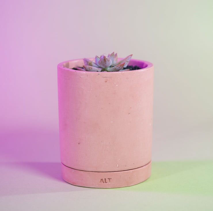 Are you looking for a decorative and innovative plant pot to ensure your precious plants are happy and healthy? Then you will love our handmade Jesmonite planter with drainage holes. This stunning Pink cylinder plant pot is a real eye-catcher and a visual highlight that will instantly turn your indoor plants into the stars of your home. The one-of-a-kind concrete-style pot comes with useful drainage holes and a water tray that prevents roots from taking damage and makes getting rid of excess water as easy as possible. The perfect gift for every passionate plant parent and a decorative highlight that anyone will fall in love with.
