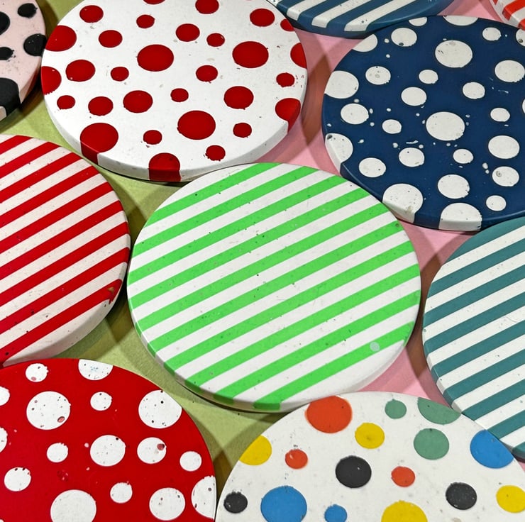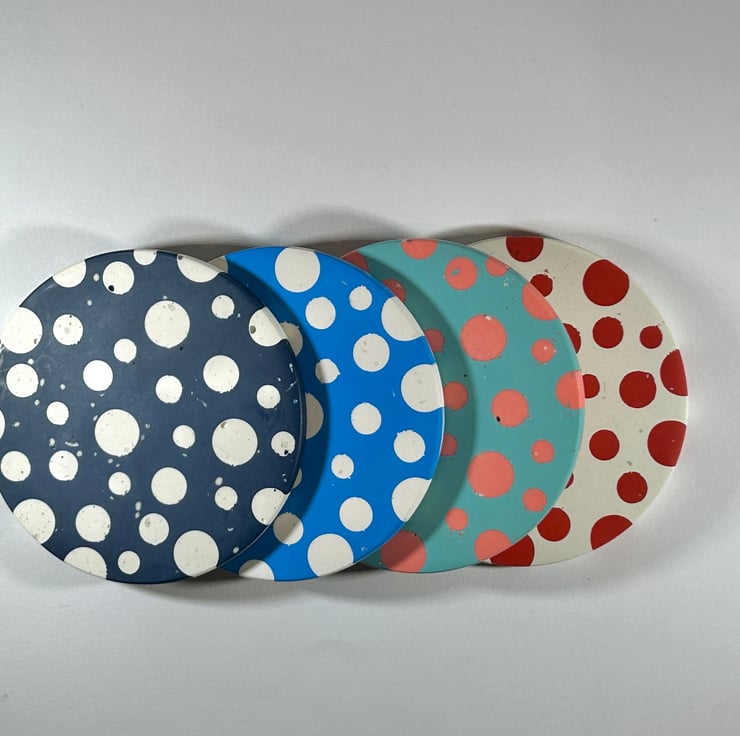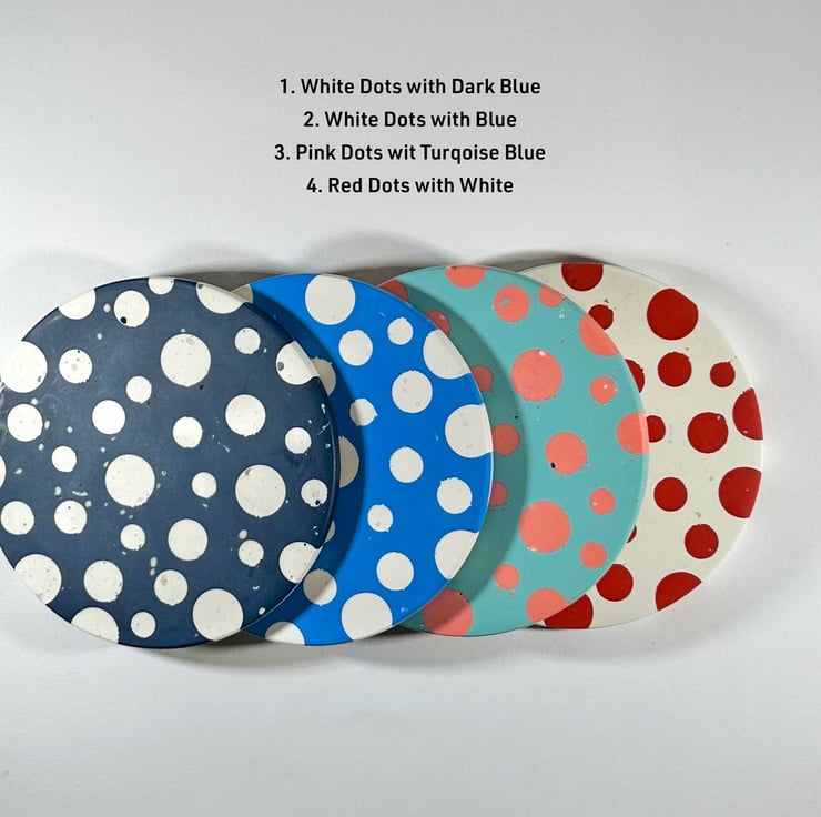 These contemporary, vibrant dot coasters were ideas I had for a long time. After many failed attempts, we finally achieved this design. As we combine at least two different colours, the colour combination options are endless. These are just a few examples. We are happy to accept custom colour orders.