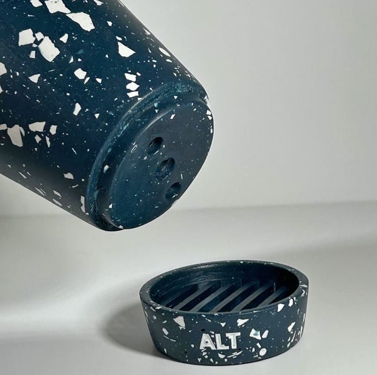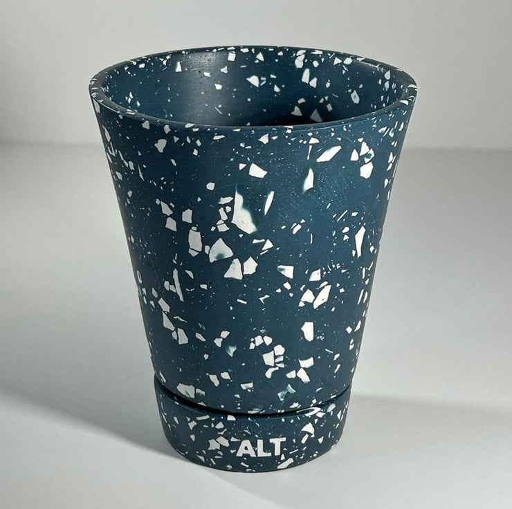 The plant pot was the very first product I ever created. I envisioned a functional yet stylish angular planter with drainage holes and a separate water tray—perfect for encouraging healthy root growth indoors, whether on a sunny windowsill or in the kitchen. To bring this idea to life, I taught myself 3D design software and used a 3D printer with biodegradable filament to produce the initial prototype. From there, I crafted a mould, allowing me to create bespoke plant pots in any colour combination. Our navy base with a white terrazzo finish is one of our most popular styles—a minimalist design that complements any type of home. This little planter is ideal for cacti or succulents—a piece we’re truly proud of, combining practicality, sustainability, and contemporary style.