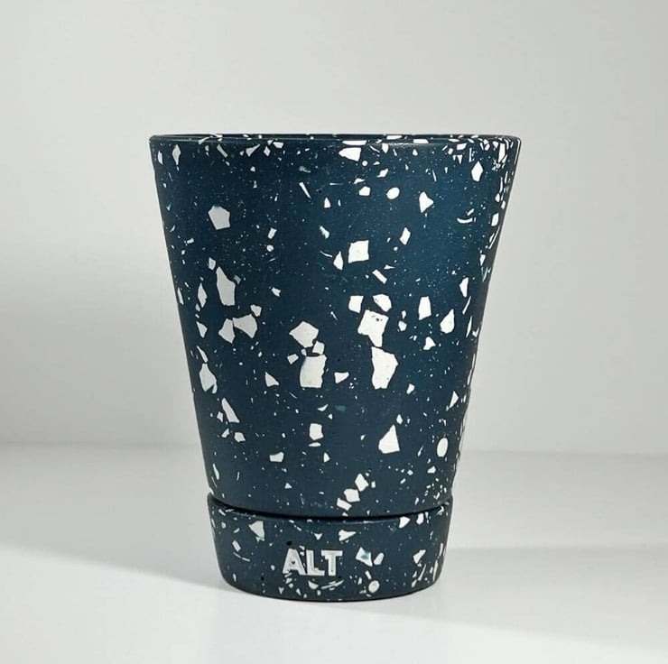Terrazzo Plant Pot Jesmonite concrete blue Indoor Planter drainage hole & tray