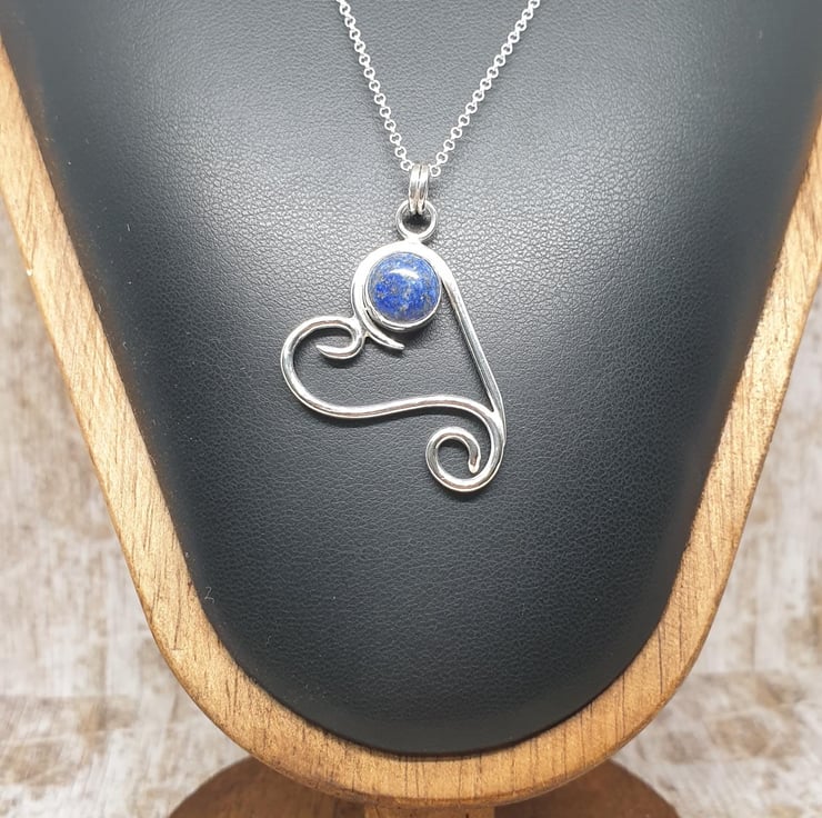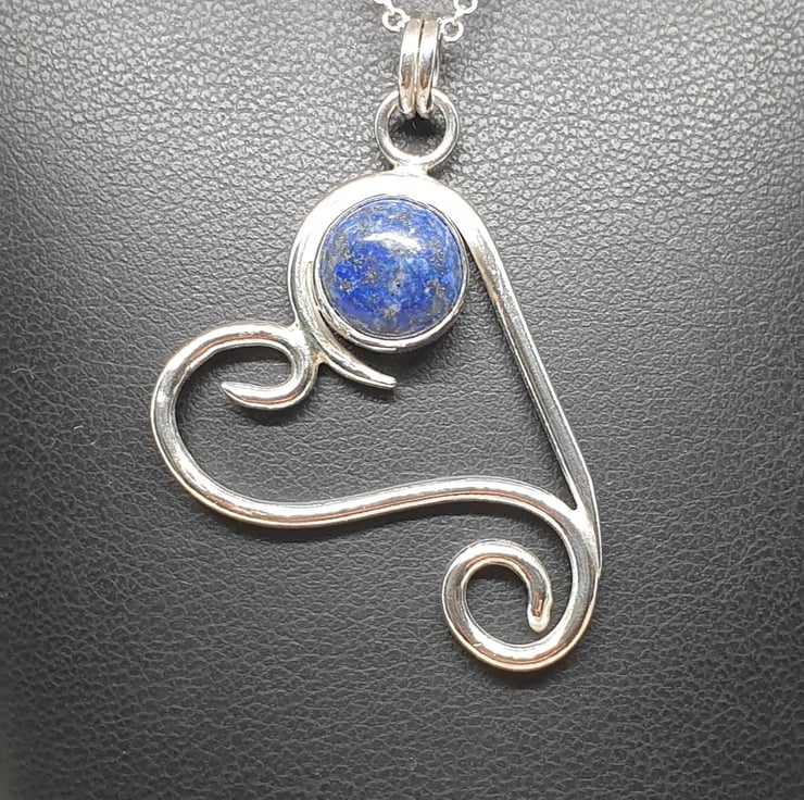 Unique Sterling Silver 925 Heart Pendant With Lapis Lazuli