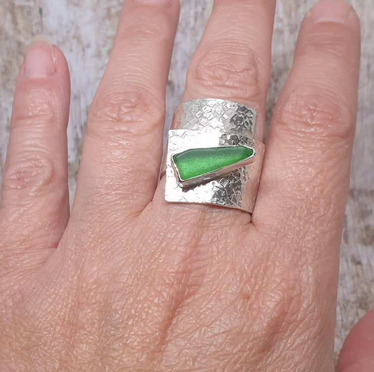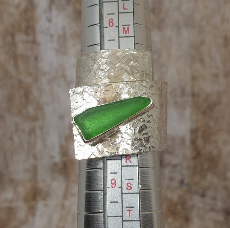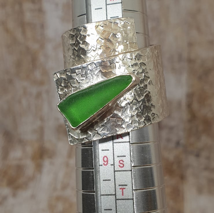 Unique Chuky Light Green Seaham Seaglass Wide Textured Spiral  Ring