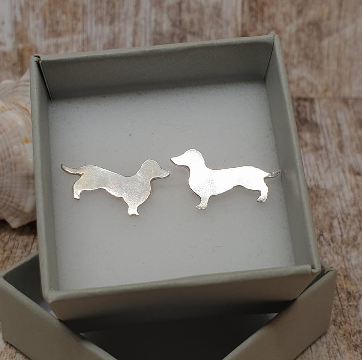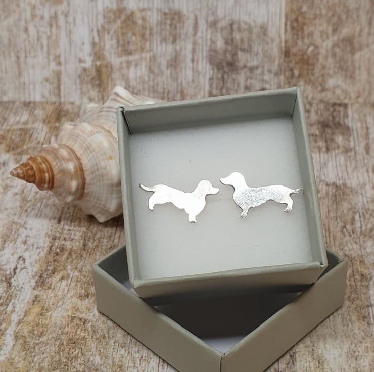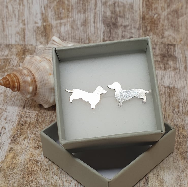 Sterling Silver 925 Sausage Dog Stud Earrings