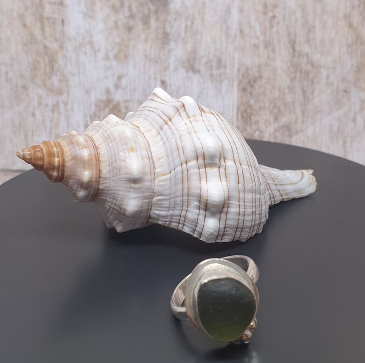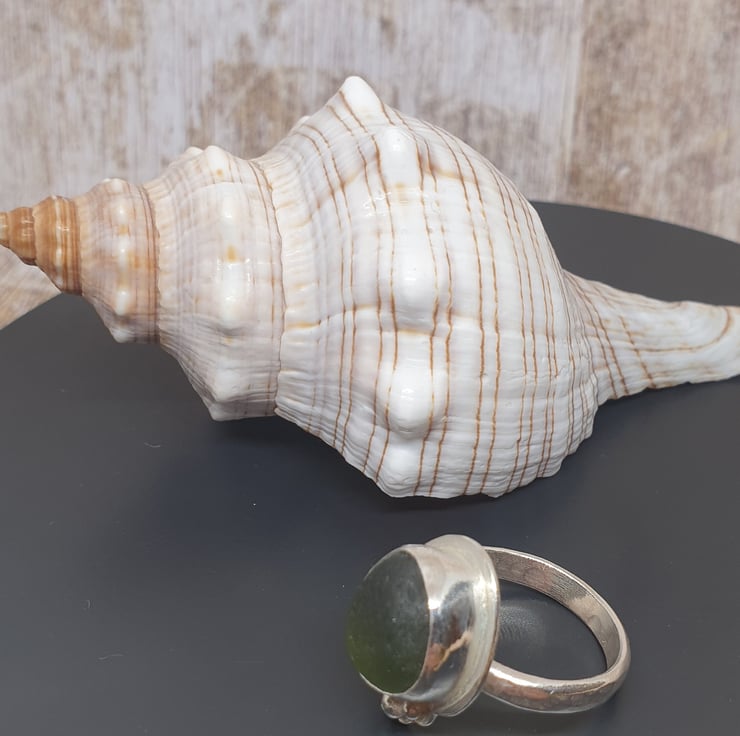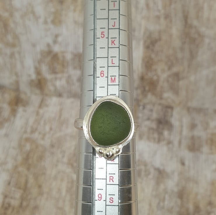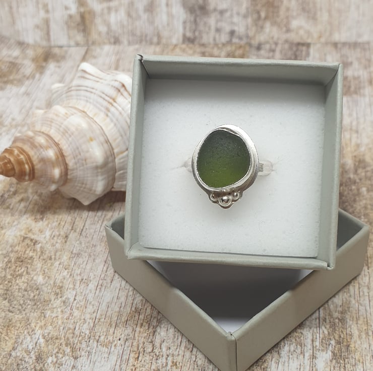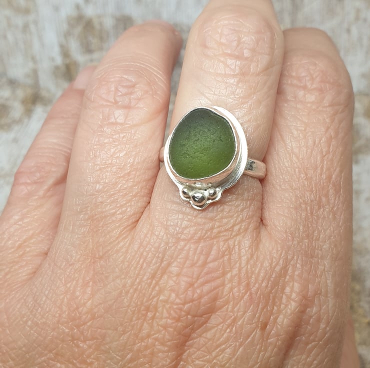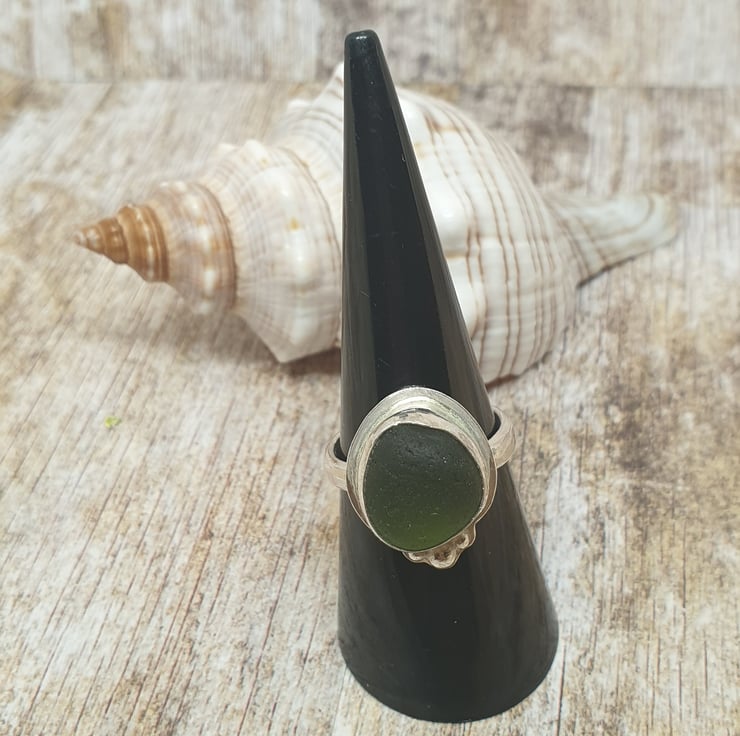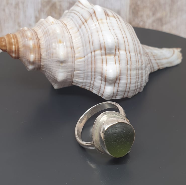 Dark Green Seaham Seaglass Sterling Silver 925 Full Hallmark Ring