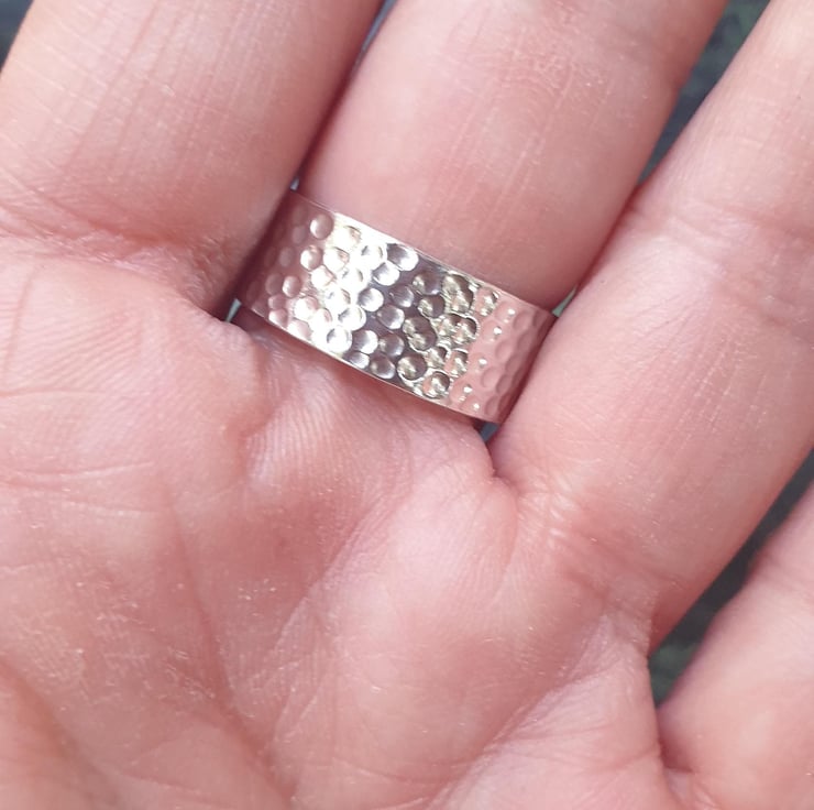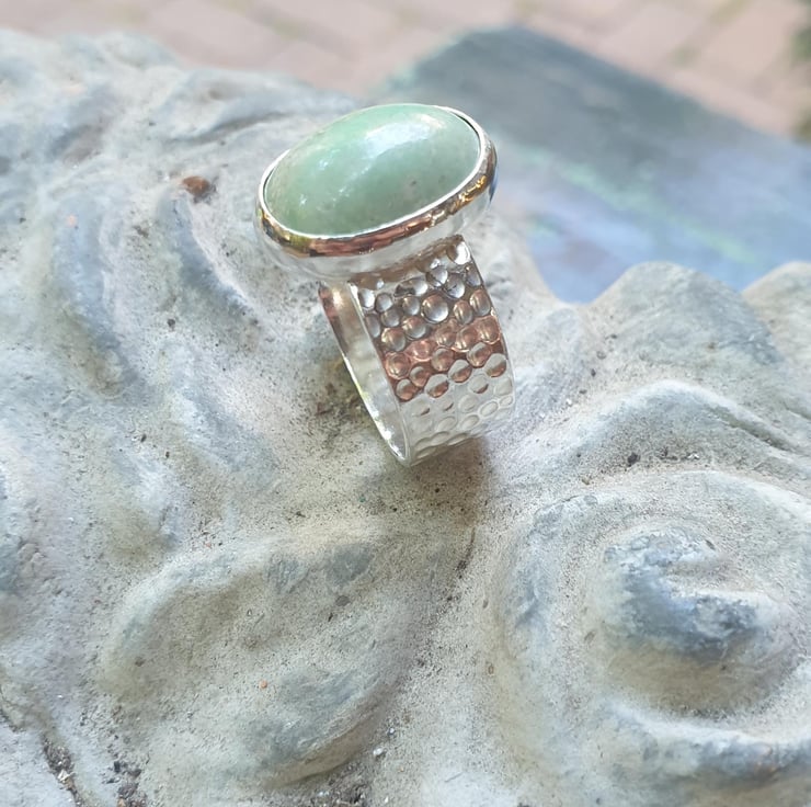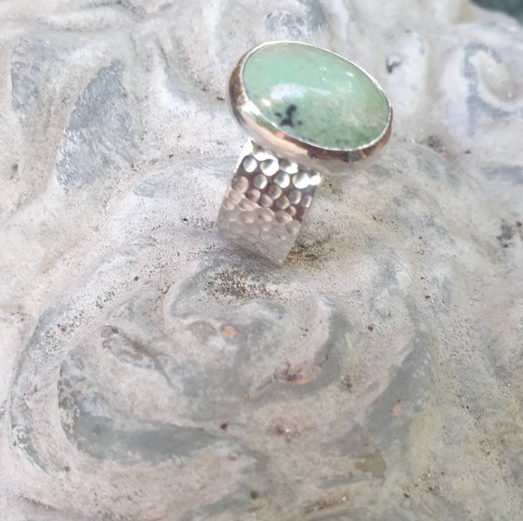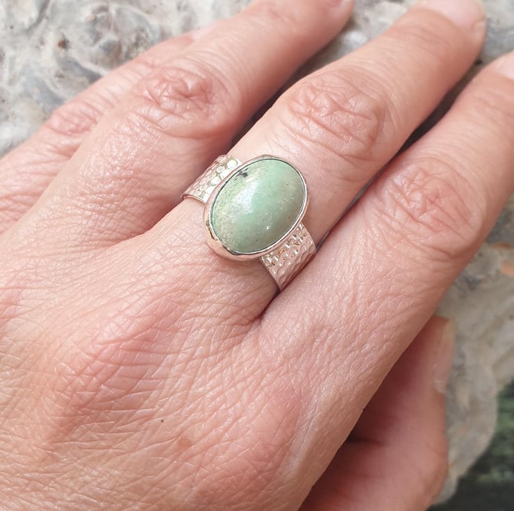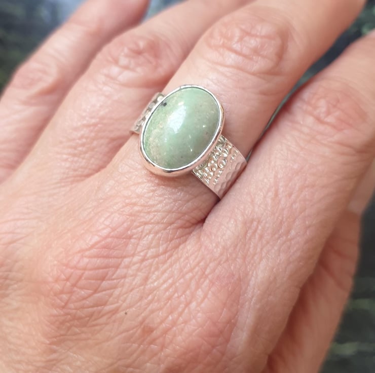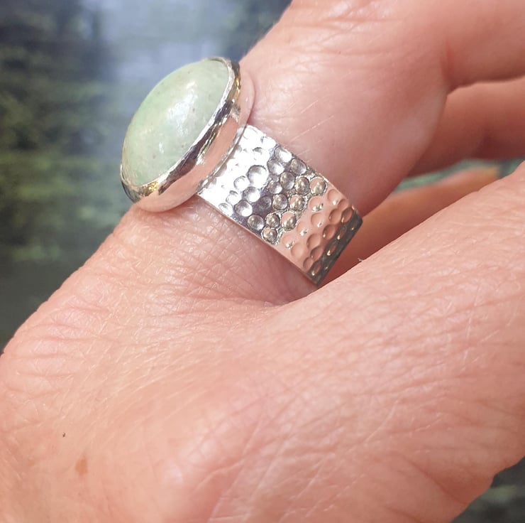 Beautiful Artisan Sterling Silver 925 Textured Wide Ring With Natural Prehnite S