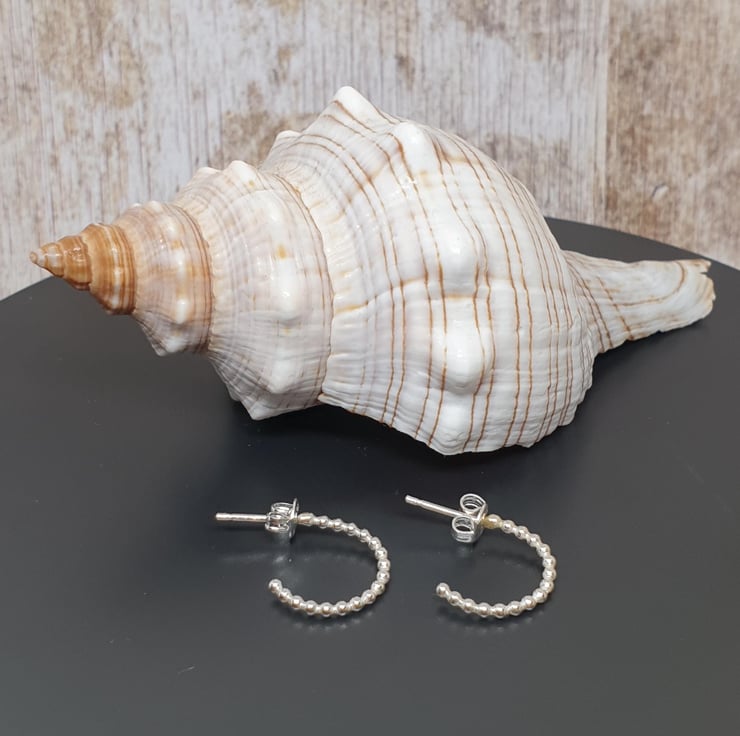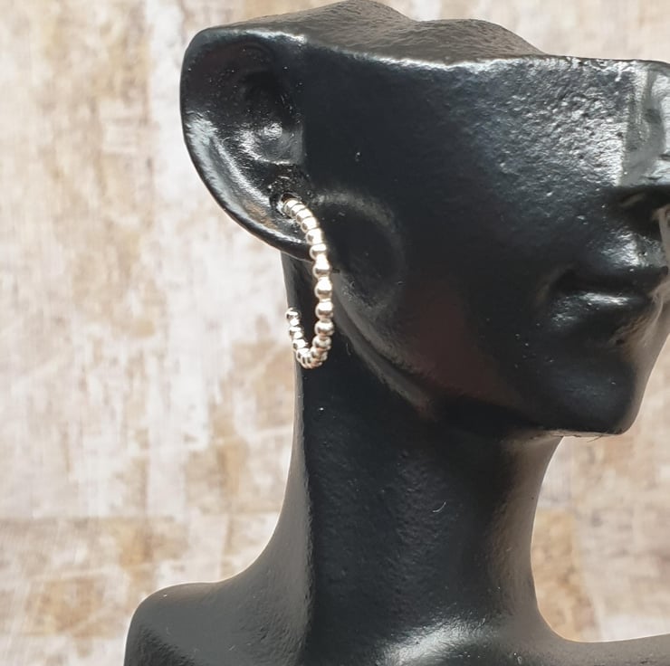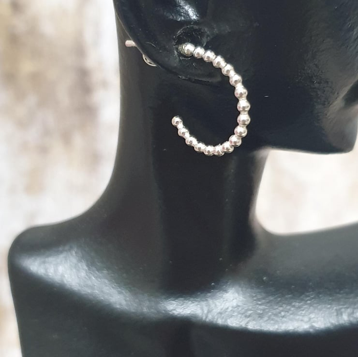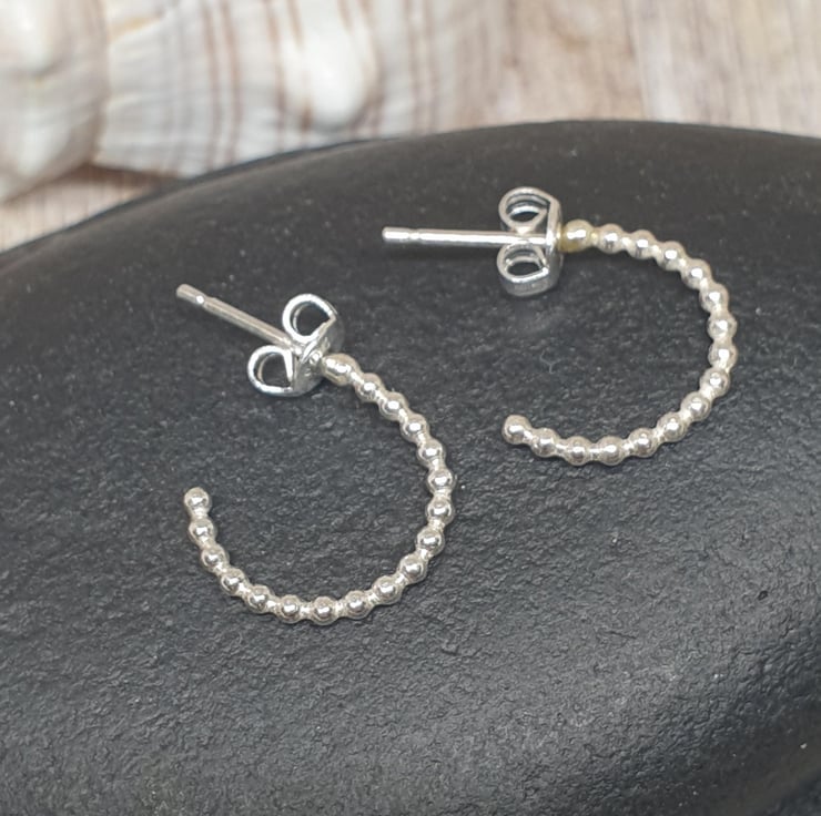 Sterling Silver 925 Hoop Beaded Stud Earrings