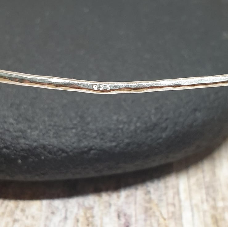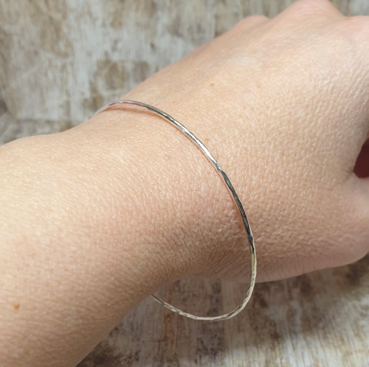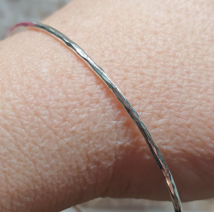 Sterling Silver 925 Hammer Textured Skinny Round Bangle