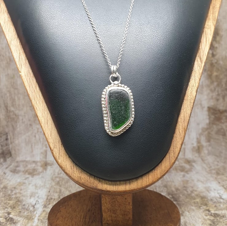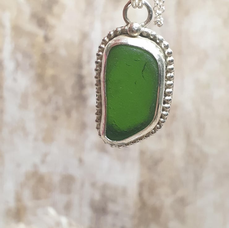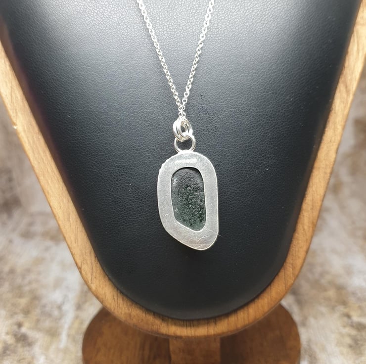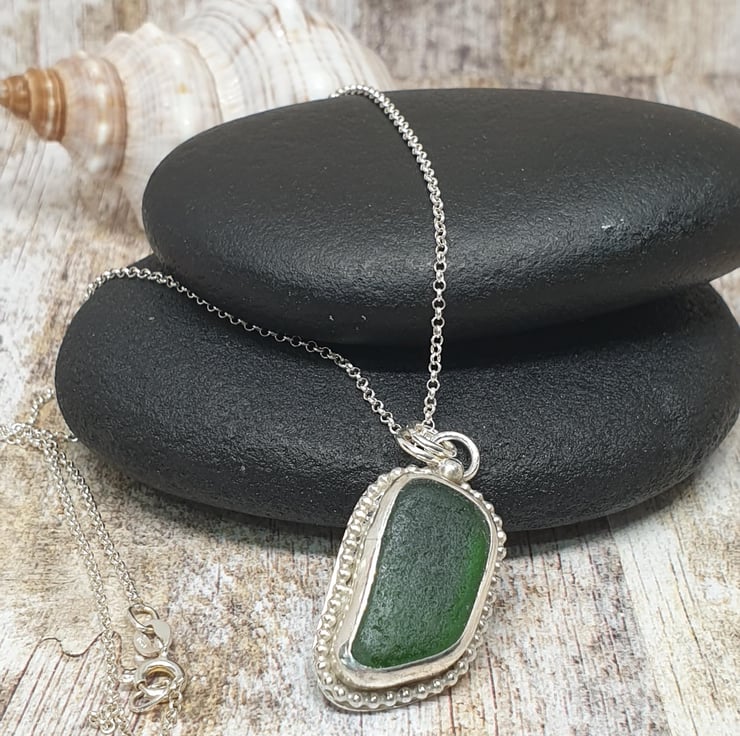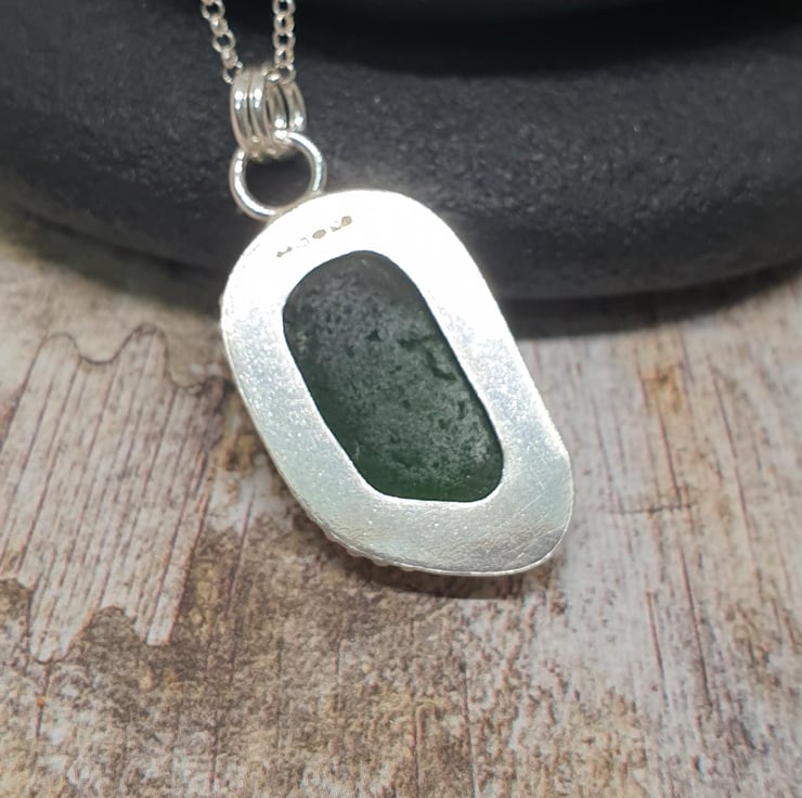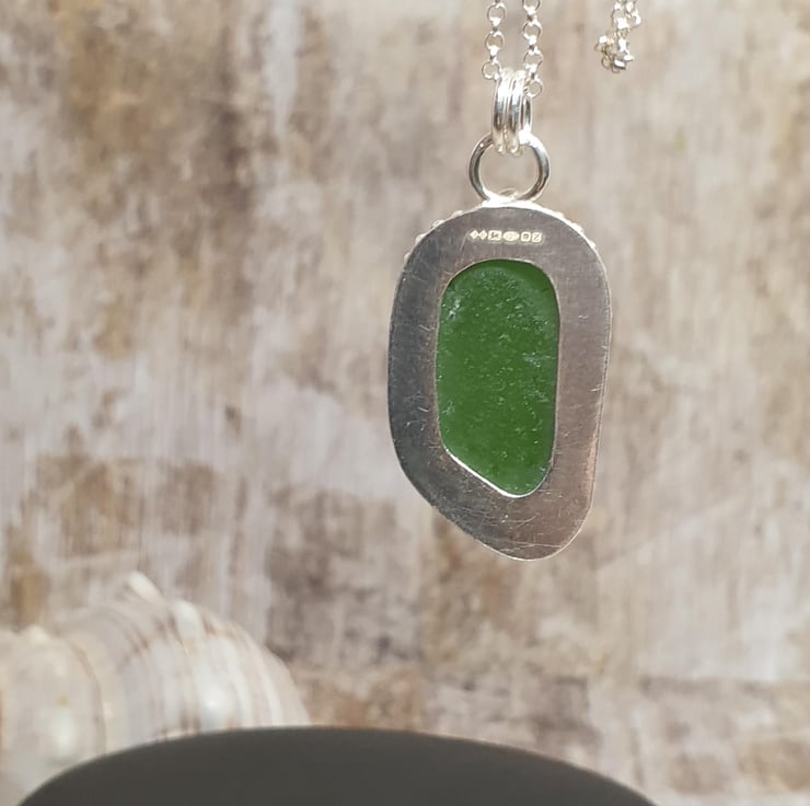 Sterling Silver 925 Beautiful Green Seaham Seaglass Pendant with Chain Full Hallmark