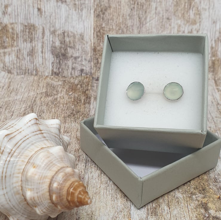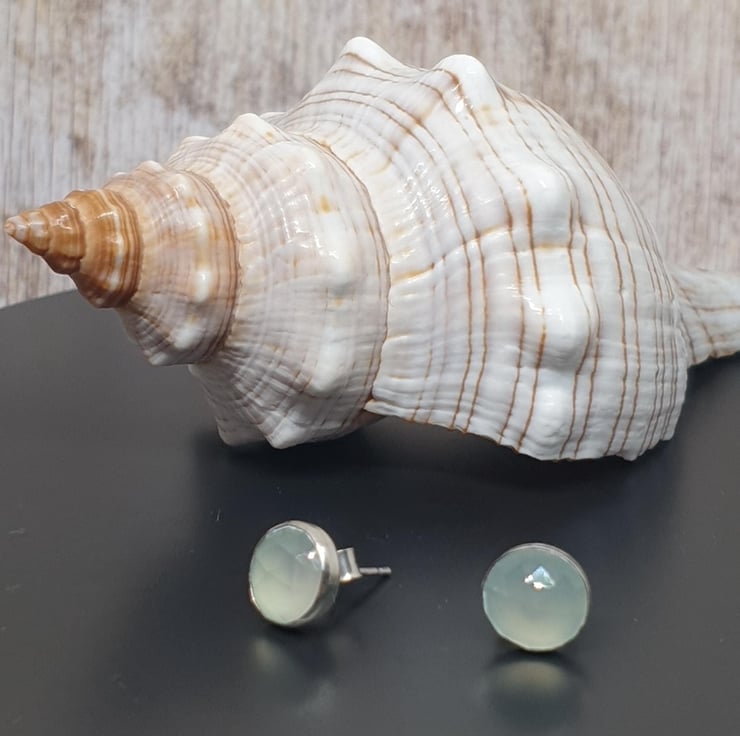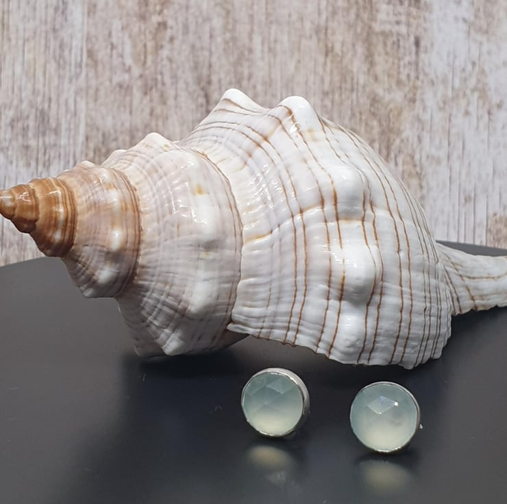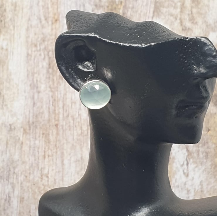 Sterling Silver 925 Aqua Chalcedony Stone Stud Earrings