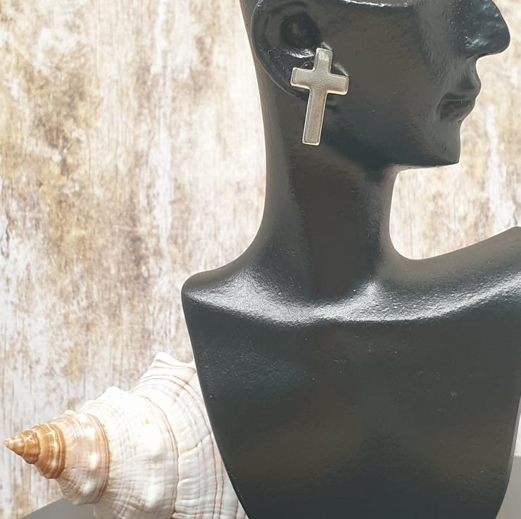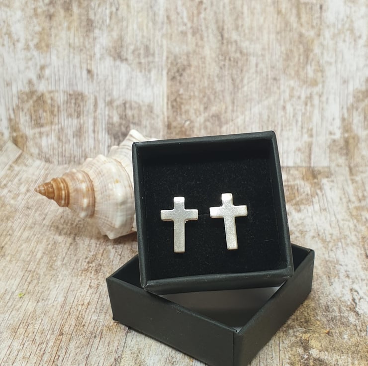 Sterling Silver 925 Unisex Cross Stud Earrings