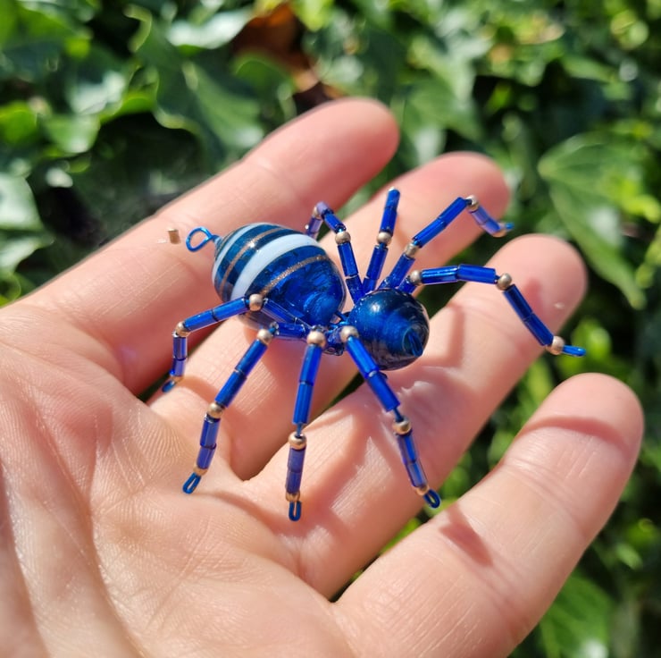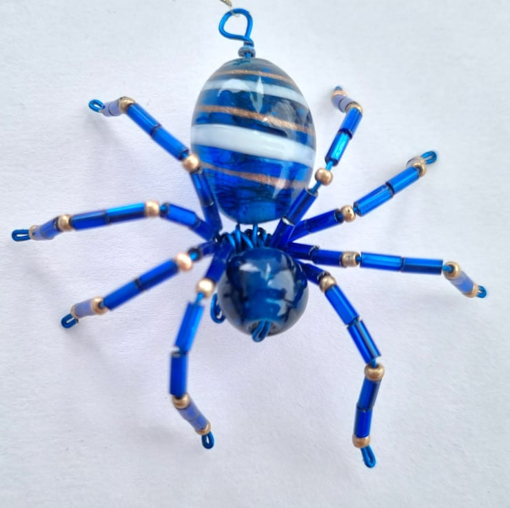 This listing is for one spider. Please note the last picture shows a different spider and is to show the monofilament 'spider silk' that she will be supplied with. This will be in a hanging kit consisting of the 'spider silk' and a small hook. You can use this kit to hang her from your Christmas tree, plants, shelving ect or leave it off and have her as a stand alone decoration.