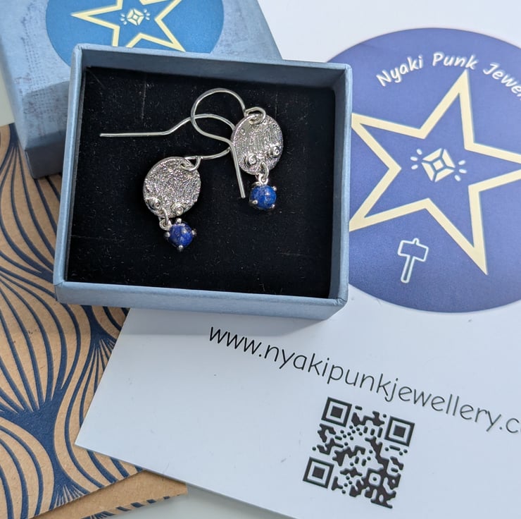 Recycled Sterling Silver Star Lapis Lazuli Drop Earrings