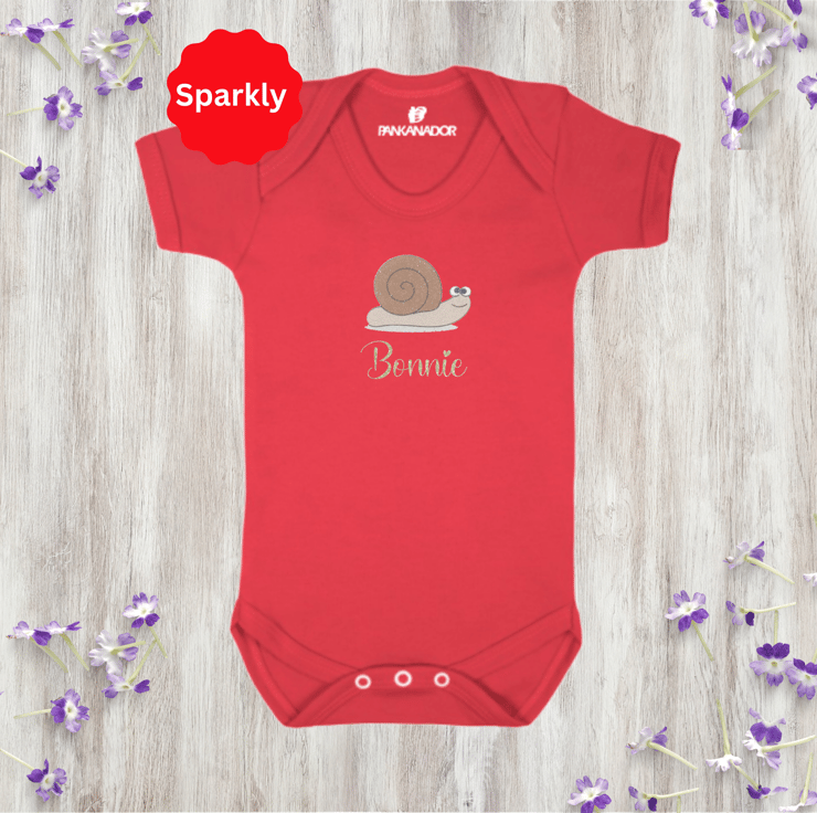 Cute Glitter Snail Baby Bodysuit – Personalised Baby Gift With Name