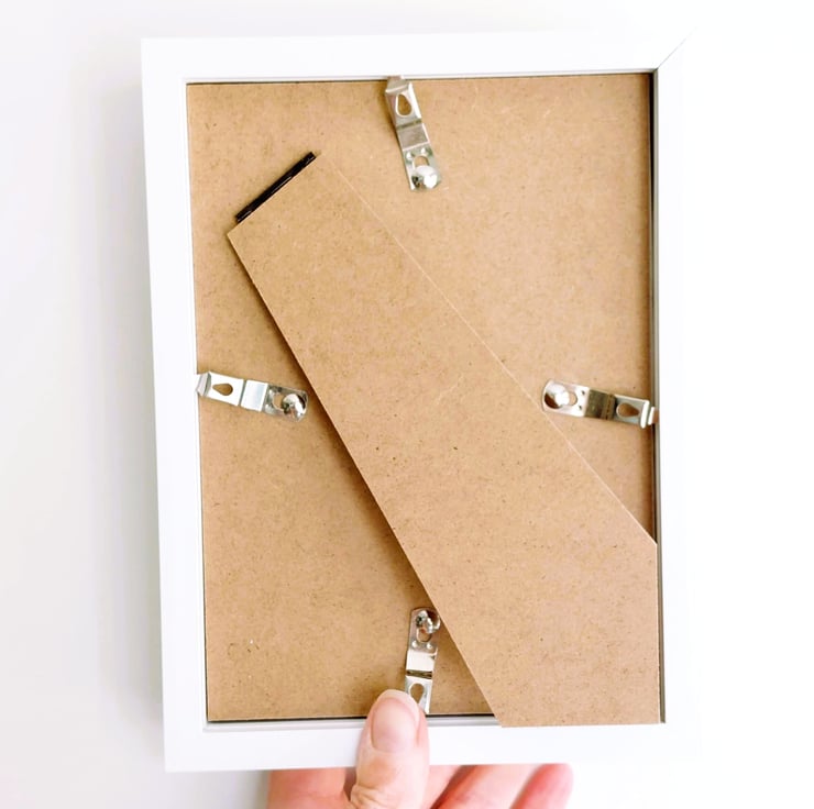 - The white acrylic frame is 20cm x 15cm portrait, made from acrylic with a stand attached so you can display it straight away.