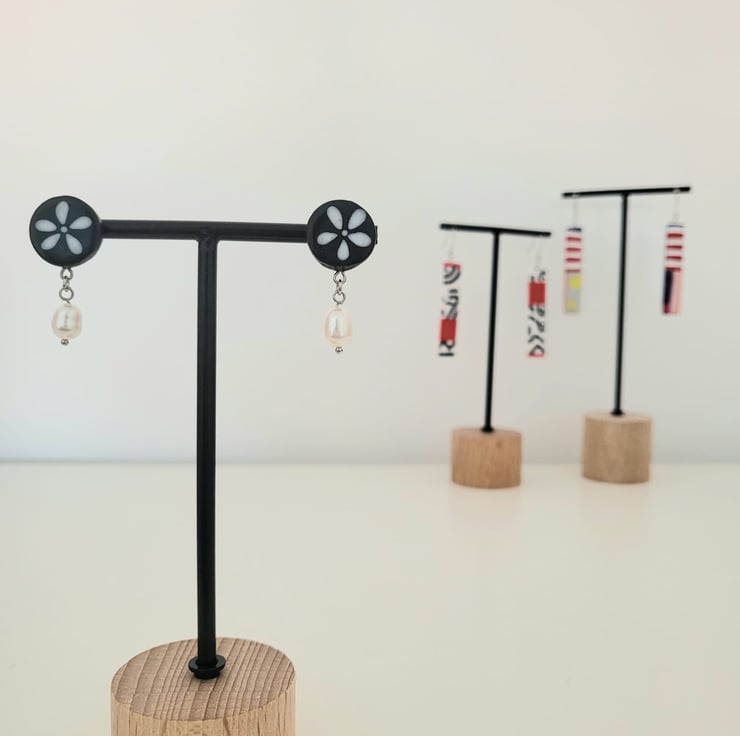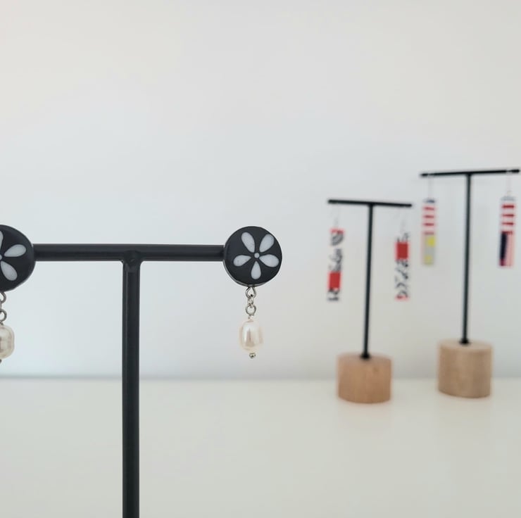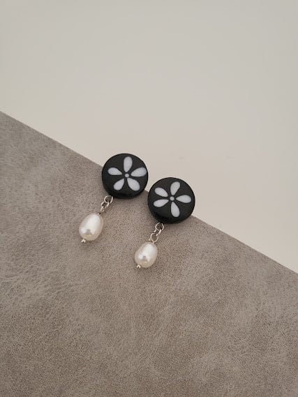 Materials: Lightweight Polymer Clay, Genuine Freshwater Pearls, Stainless Steel Posts