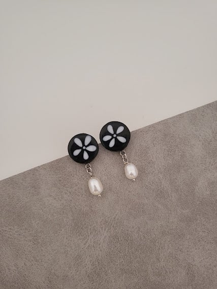 Discover the serene beauty of our Midnight Bloom & Pearl Collection, where delicate floral artistry meets classic sophistication. Each enchanting pair features a finely detailed blossom on a rich, deep background, offering a captivating pop of colour. From these charming studs, a luminous genuine freshwater pearl gracefully dangles, creating an elegant silhouette. Designed for both beauty and comfort, these lightweight earrings are perfect for adding a touch of refined grace to your everyday look or special occasions.