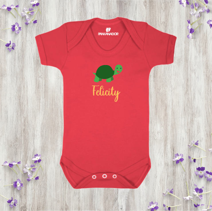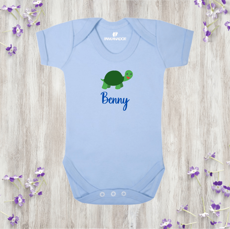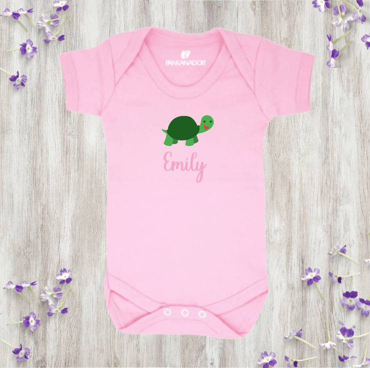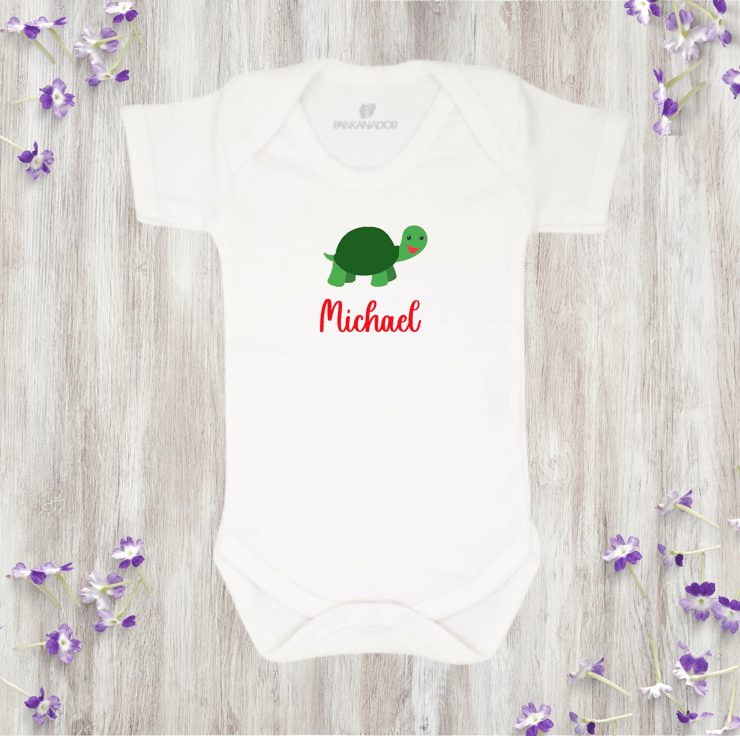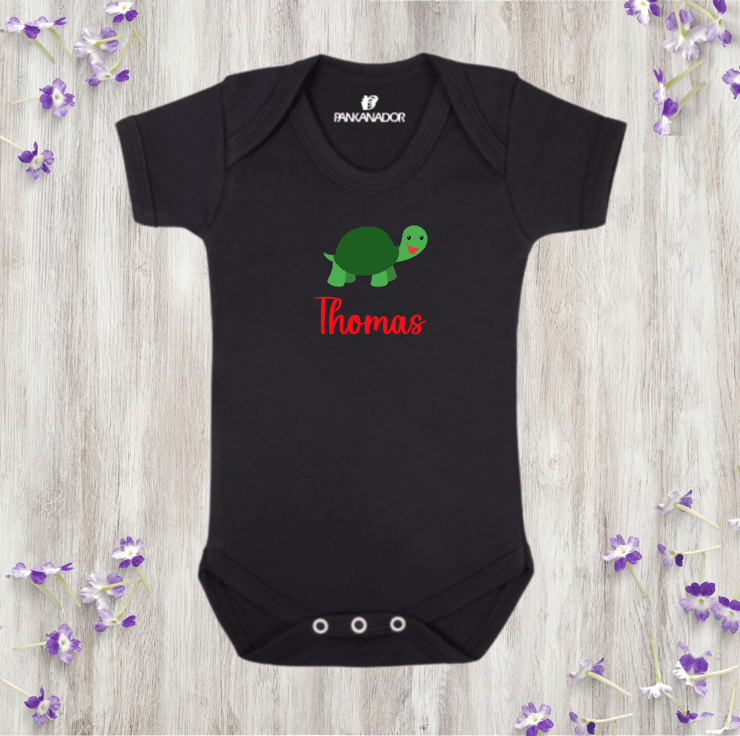 Bring a smile to your little one's day with this adorable personalised baby bodysuit, featuring a cute turtle illustration and your chosen name printed beneath. This gentle, nature-inspired design makes a thoughtful and unique gift for babies who love animals – and parents who love meaningful keepsakes.