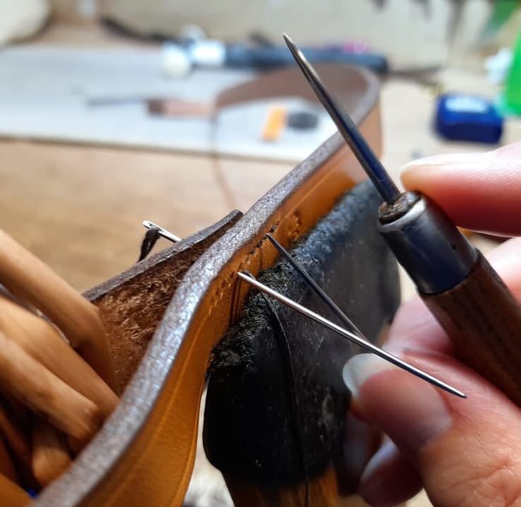 Becs and I have been collaborating since 2021 and whilst I love all aspects of my basketmaking, working with Becs’ beautifully handmade English leather handles has been special.