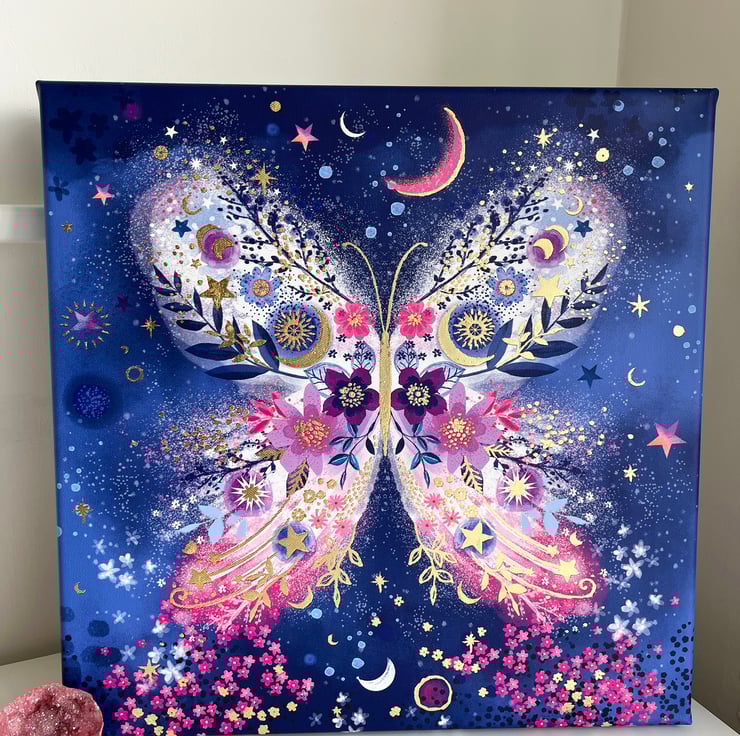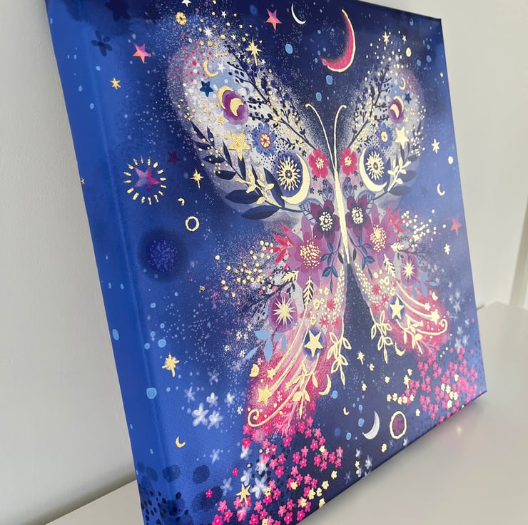 Celestial Butterfly- printed canvas- hand finished with gold leaf