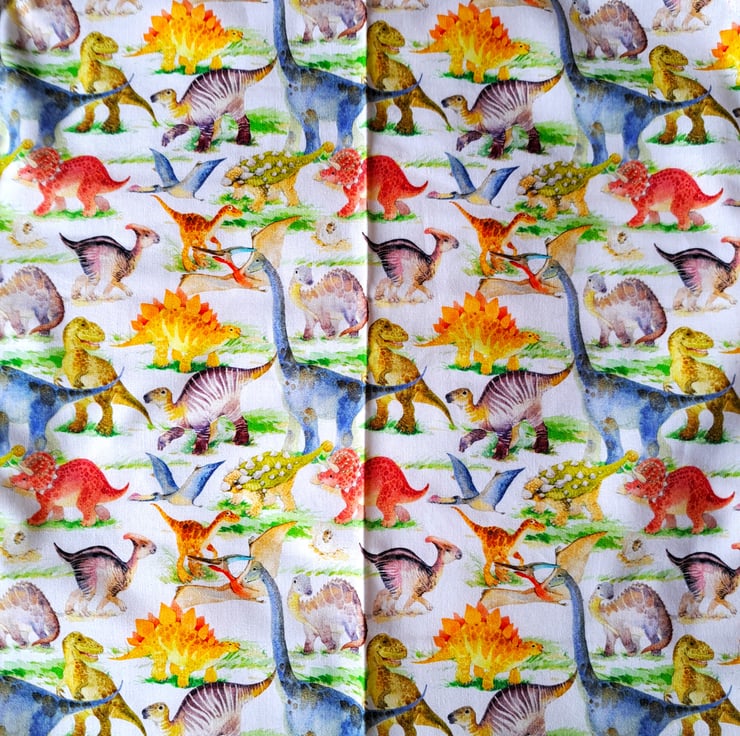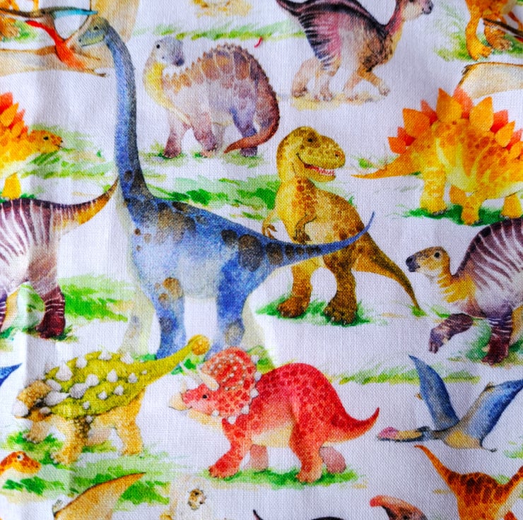 I saw this lovely dinosaur fabric and couldn't resist it. I have been making little aprons for kids since my own children, now in their fifties (!) were small. Over the last forty-odd years I must have made and sold thousands of them.