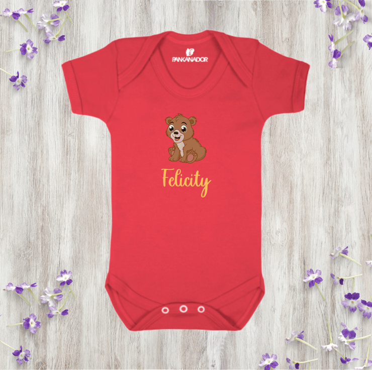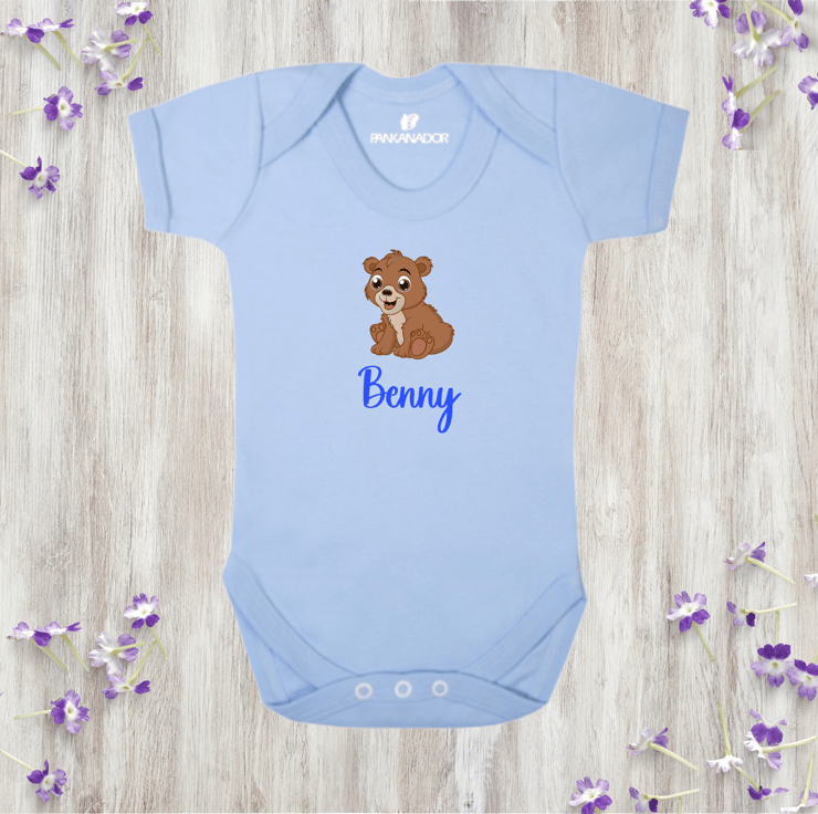 Personalised Teddy Bear Baby Bodysuit – Cute Baby Grow With Name And Bear Design
