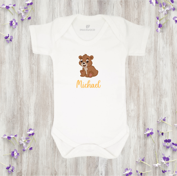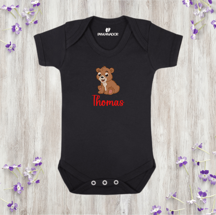 This sweet and timeless baby bodysuit features an adorable teddy bear illustration with your baby’s name printed beneath. A classic favourite for all ages, this personalised bear vest makes a heartwarming gift for newborns, baby showers or first birthdays.