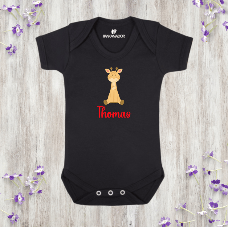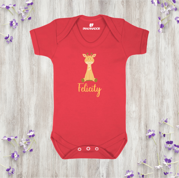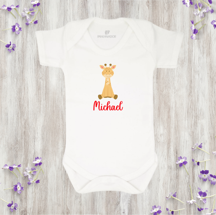 Personalised Giraffe Baby Bodysuit – Cute Baby Grow With Name And Giraffe Design