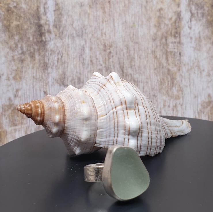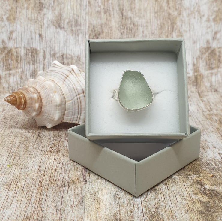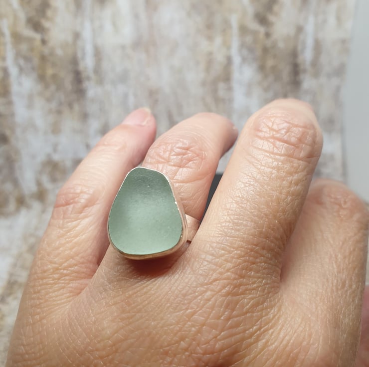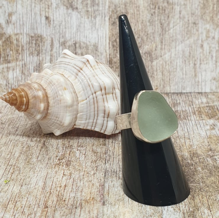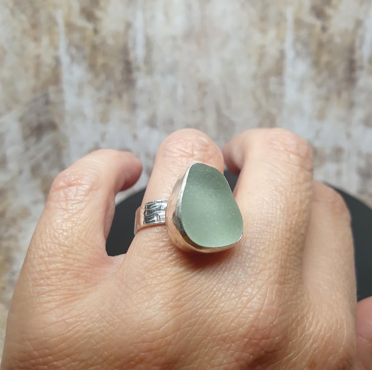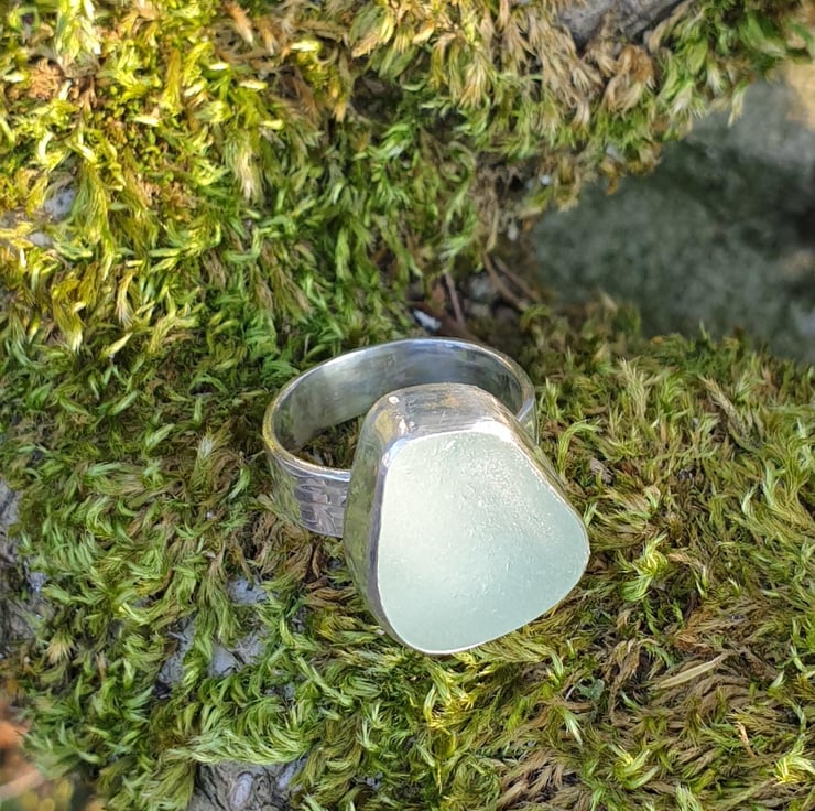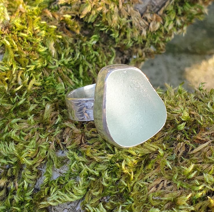 Sterling silver 925 seafoam colour Seaham seaglass textured band ring full hallmark