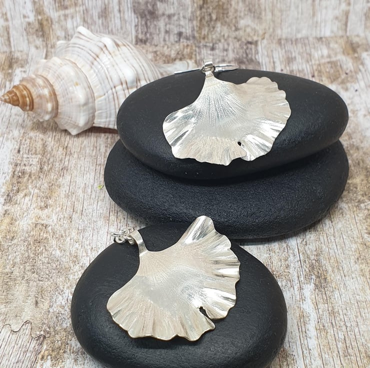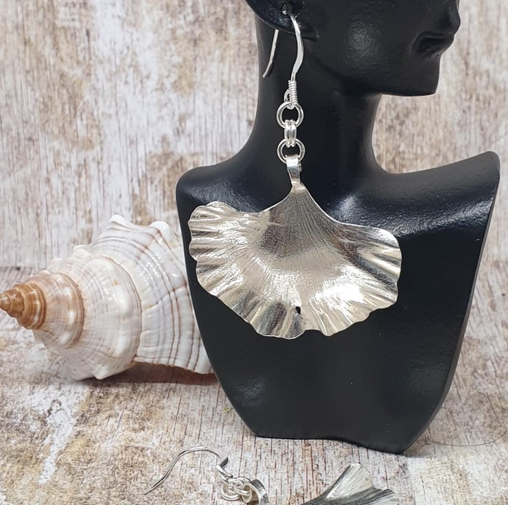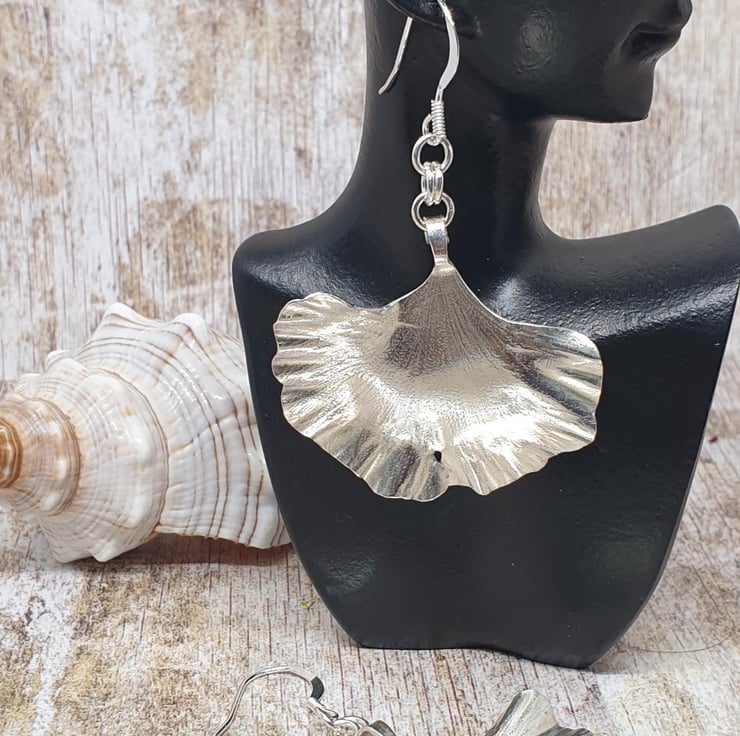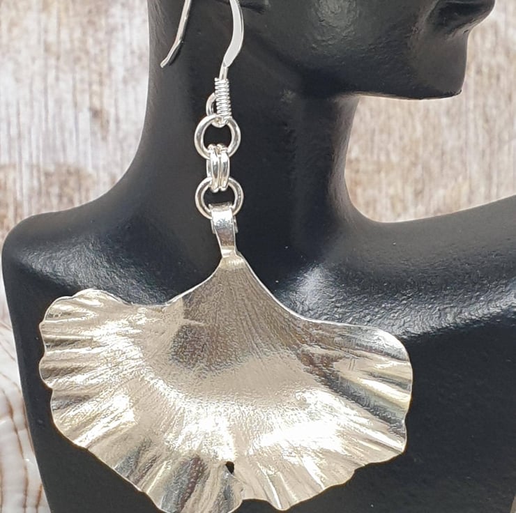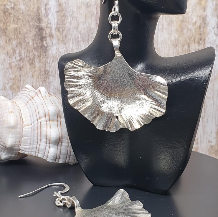 Beautiful Unique Gingko Leaf Earrings Sterling Silver 925 Full Hallmark