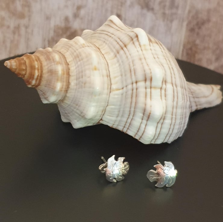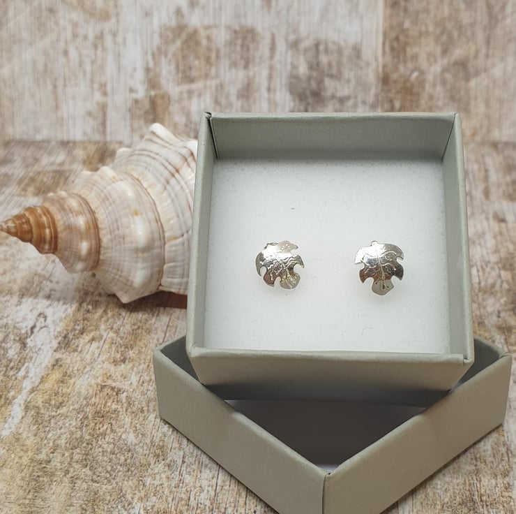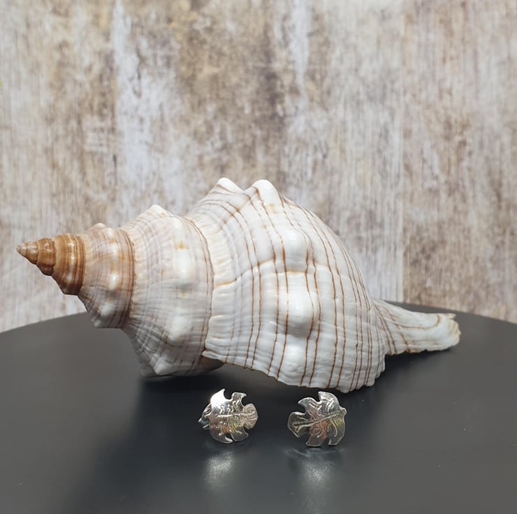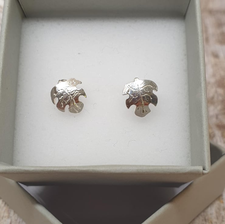 Sterling Silver 925 Carved Leaf Stud Earrings