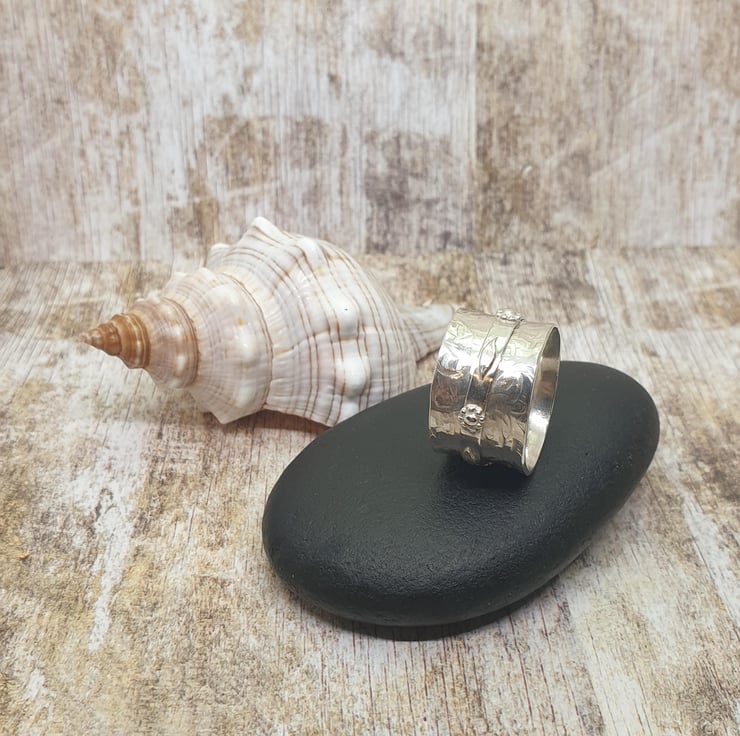 Sterling Silver 925 Textured Floral Pattern Spinner Wide Ring Full Hallmark