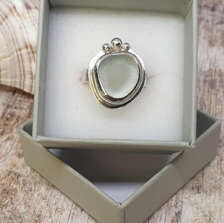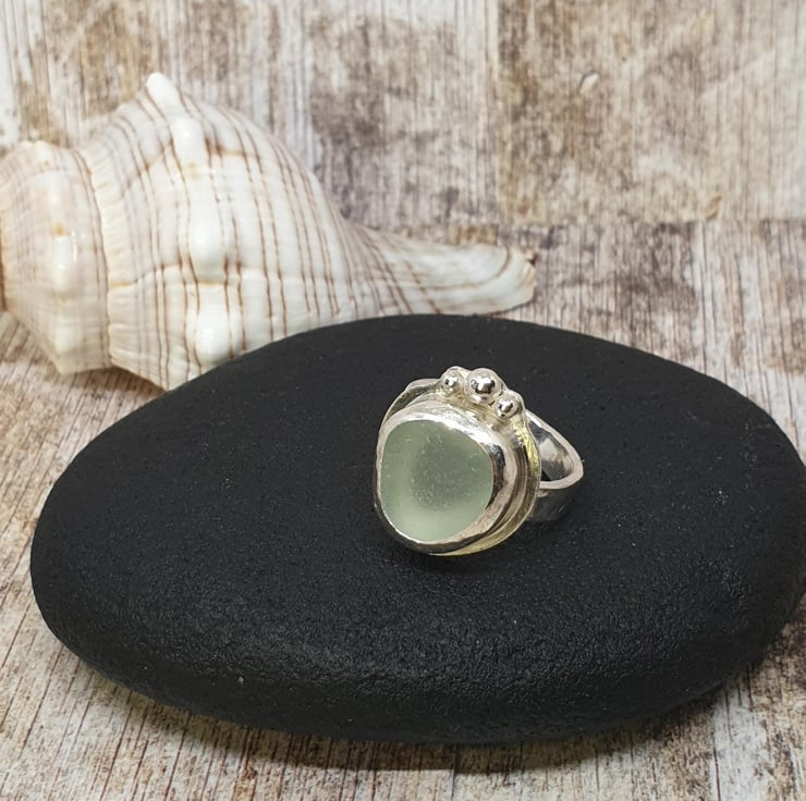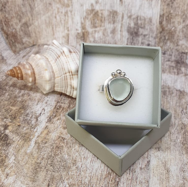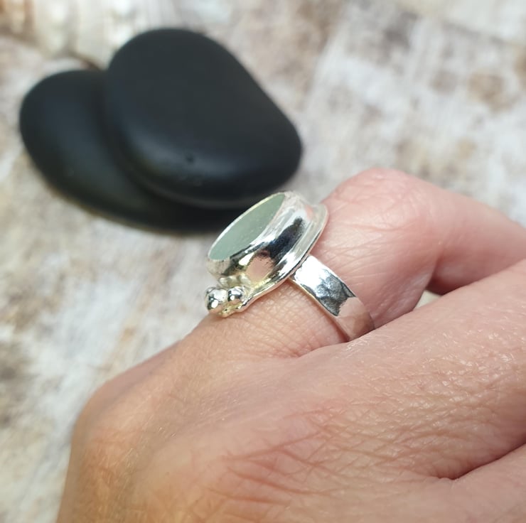Sterling Silver 925 Seaham Seafom Colour Seaglass Texturalt Band Ring Full Hallmark
