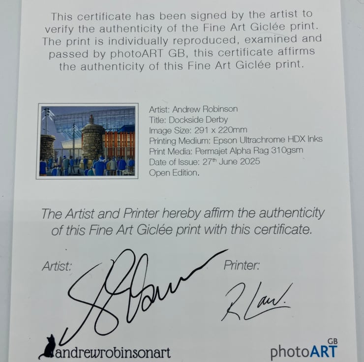 All andrewrobinsonart giclee prints are professionally printed, made using state of the art printing equipment with only the highest quality inks and print media. This ensures an honest reproduction that can last a lifetime.