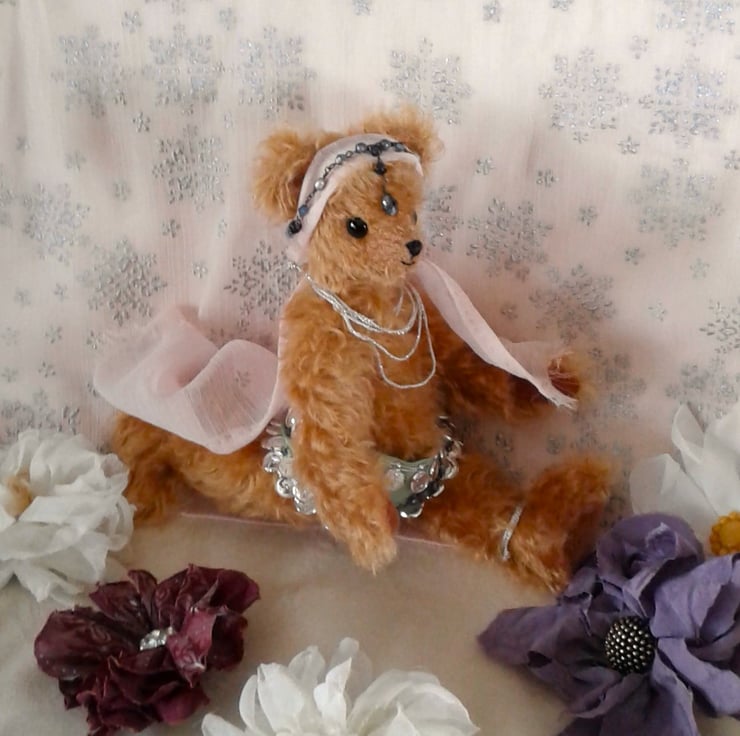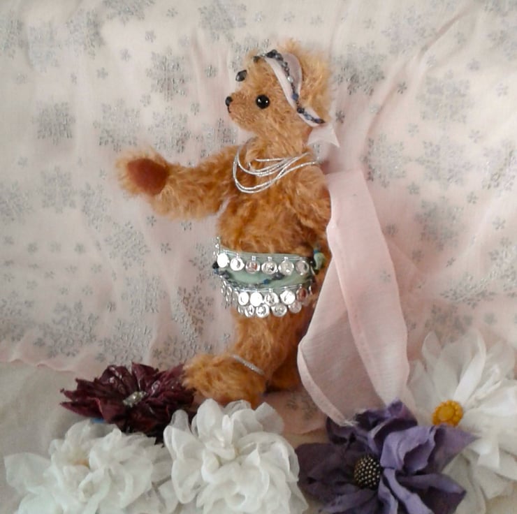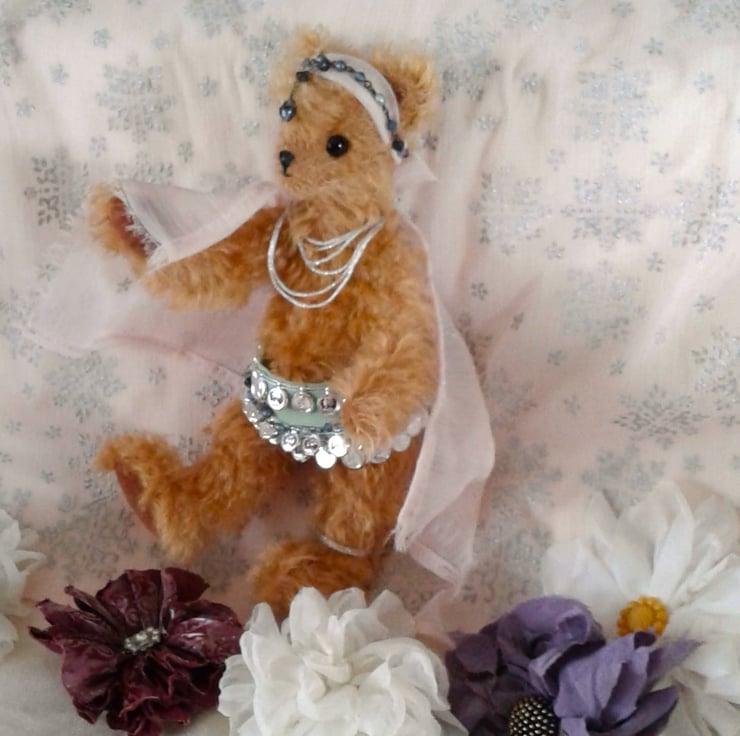 Mohair collectable bear, Jasmine dressed as a belly dancer, 10" tall jointed