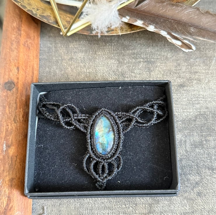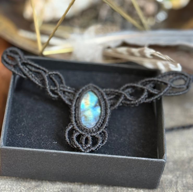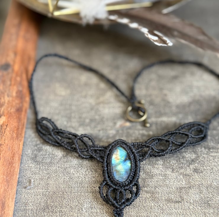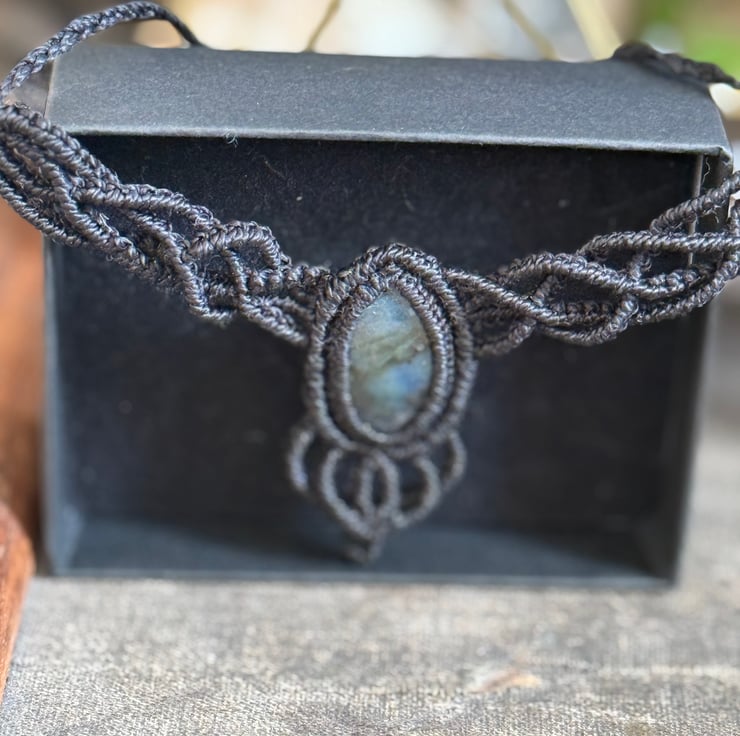 Labradorite Crystal Macrame Necklace, Boho jewellery, includes Free UK Delivery