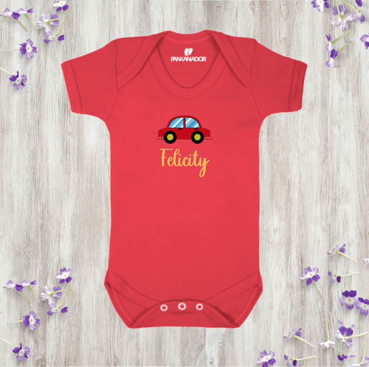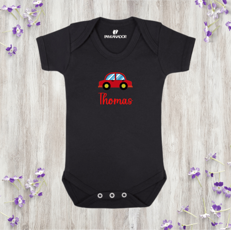 Vroom vroom! This personalised baby bodysuit features a cheerful car illustration and your little one’s name printed underneath – perfect for budding drivers and vehicle lovers from day one. A fun and timeless design that suits both boys and girls.