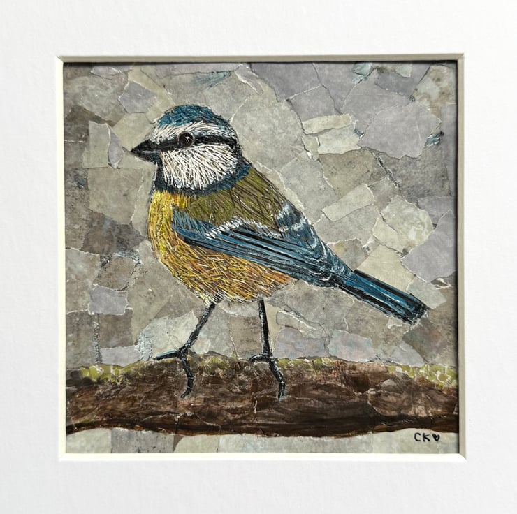 Blue Tit collage made with paper and paint