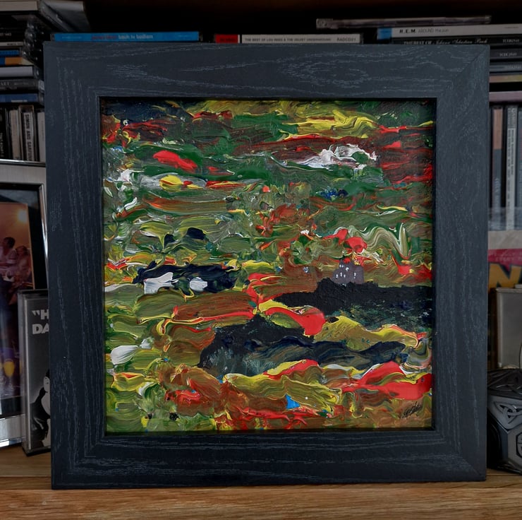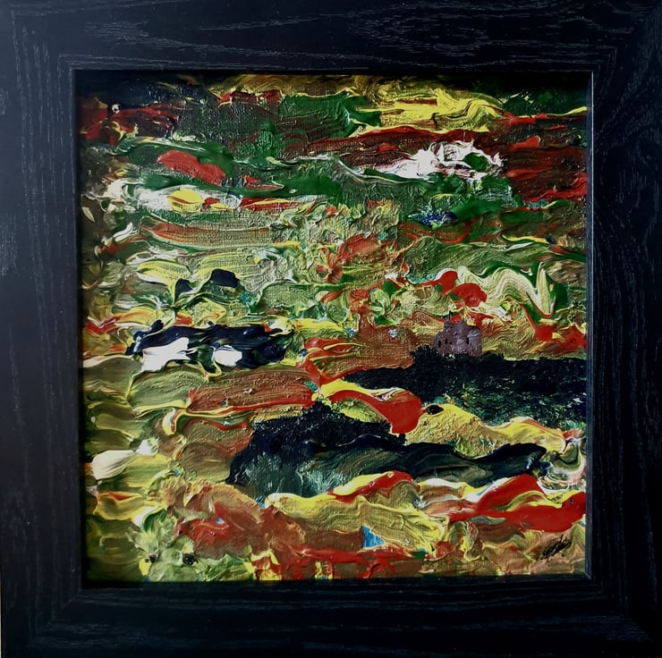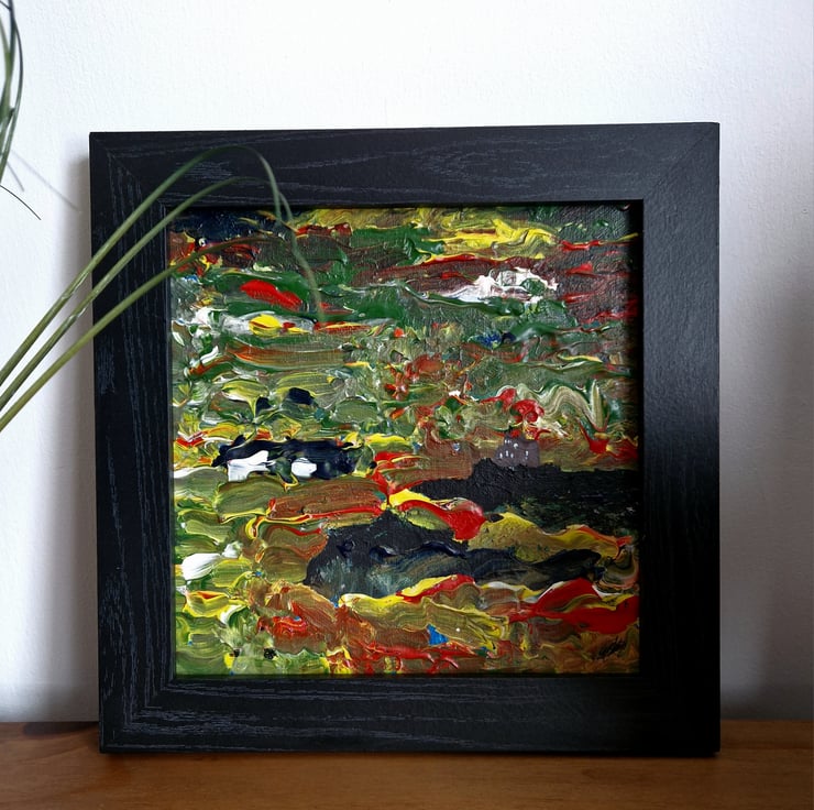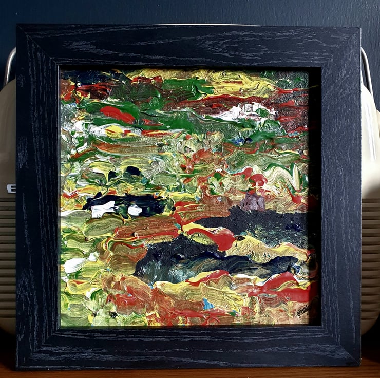 Original Acrylic painting on artists canvas board mounted in an upcycled black wooden frame (not glazed)