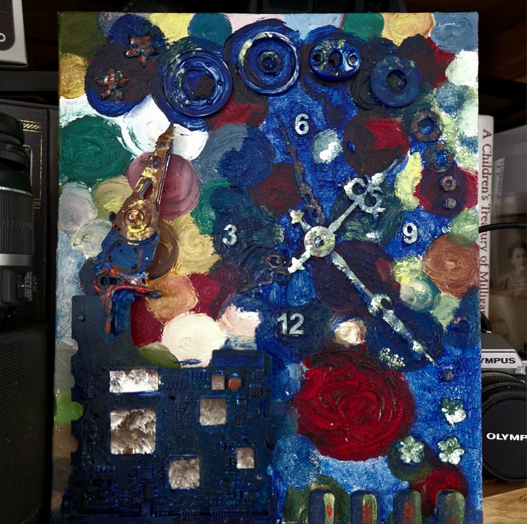 Obscured by Time, Original 3D Mixed Media on Canvas Board 10 x 8inch.