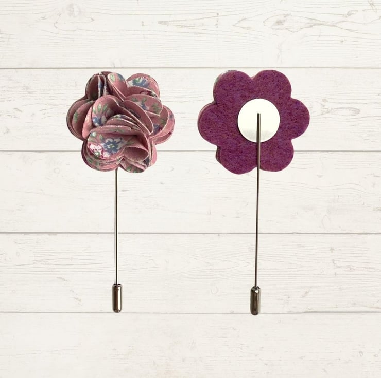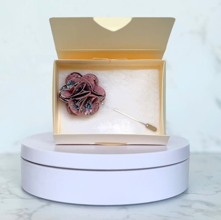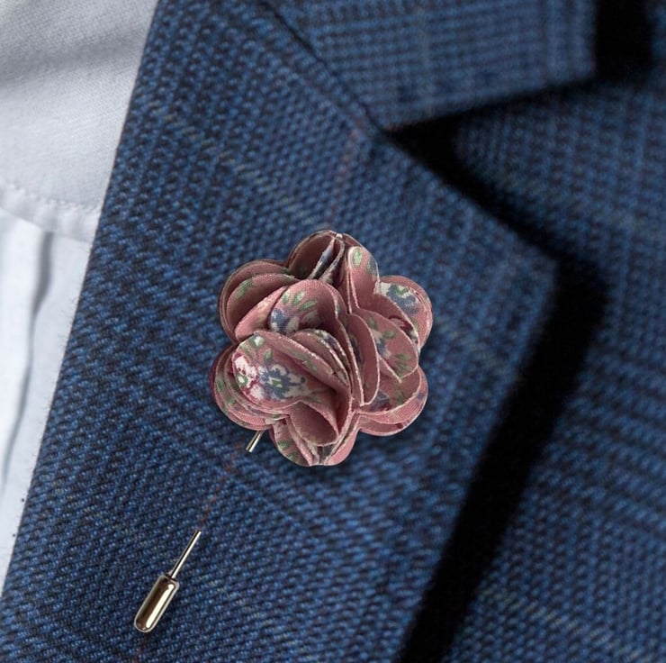 Add a subtle yet stylish finishing touch to your outfit with this handcrafted fabric flower lapel pin. Carefully sewn by hand using Dusky Pink floral-print fabric, this elegant accessory is the perfect finishing touch for weddings, parties or simply elevating your everyday suit.