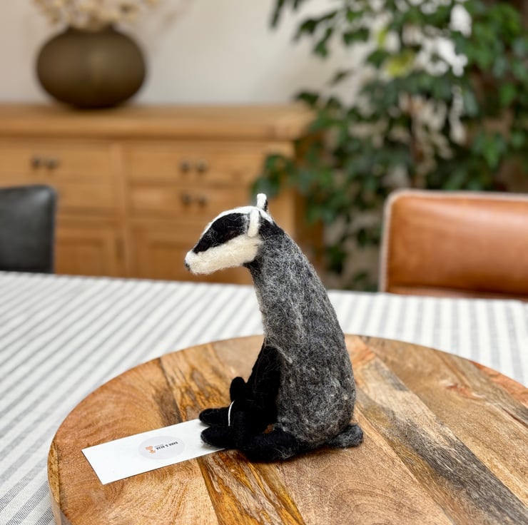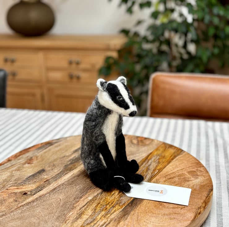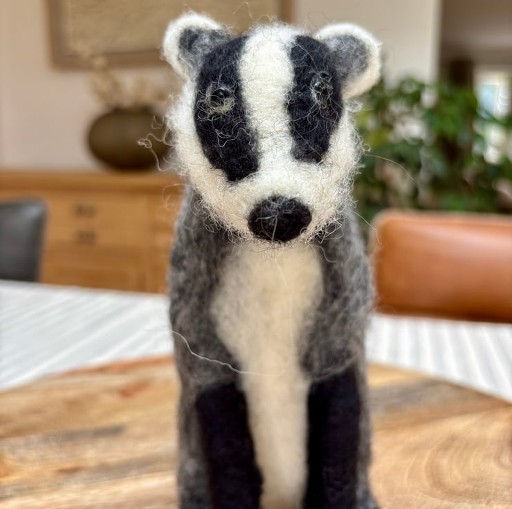 A handmade needle felt badger made with 100% Corriedale wool and using no pattern so completely unique.