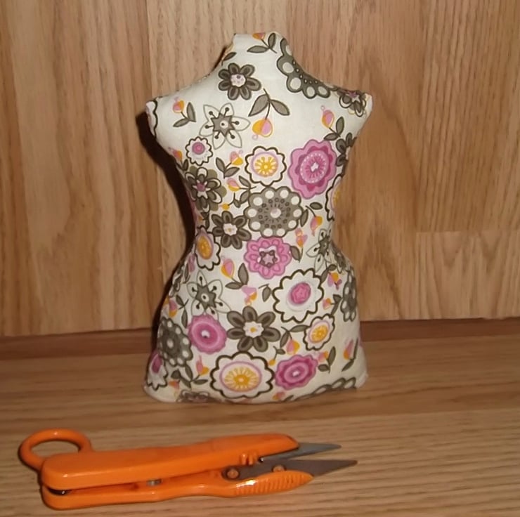 Mannequin Pin cushion, fabric, pattern weight, light doorstop Floral