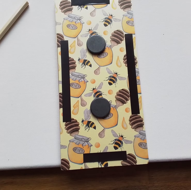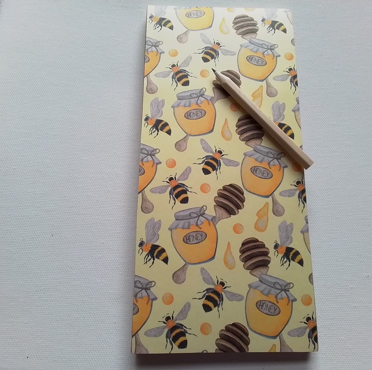 The lined pad, complete with tick off boxes, has a cover of bumble bees and honey pots.