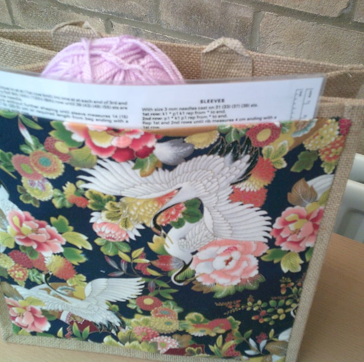 I have one of these bags that I use when I am out and about to hold my knitting or crochet - I use the pocket for scissors, tape measure and spare knitting needles or crochet hook. So this bag has a multitude of uses.