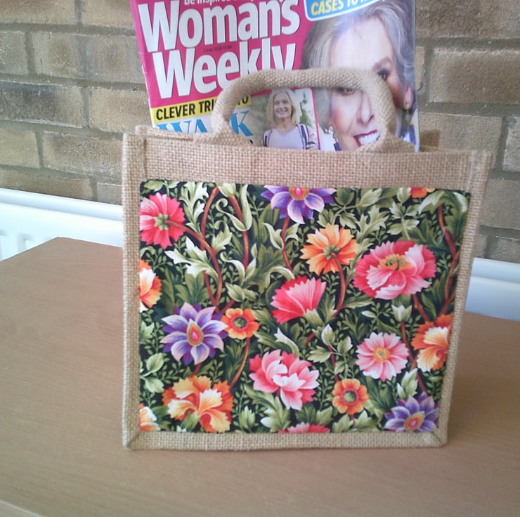 This Natural Jute bag comes with a 100% Cotton lined pocket with a Velcro fastening on one side which is very handy when out and about for popping your phone, keys or purse in. Ideal for using on a trip to the theatre to pop your treats in or on a day trip - especially if you don't want to take a handbag - you have a 2 in 1 with this bag.